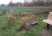 Die von dem Rübenacher Wolfgang Springer 2013 erschaffene und am Wirtschaftsweg 2020 um einen Sockel erweitert aufgestellte Jakobsstele, wurde jetzt aus ihrer Verankerung gerissen...