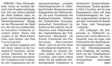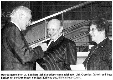 Viel Lob für zwei Vorbilder: Inge Becker und Dirk Crecelius ausgezeichnetRhein Zeitung – 23.01.2009
