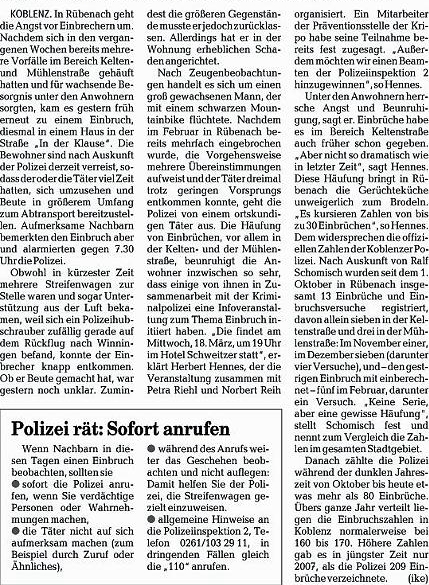 Rübenacher haben Angst: 13. Einbruch in diesem Winter