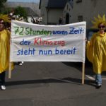 Vom 07. bis 10. Mai nahm die KaJu Rübenach/Bubenheim an der 72 Stunden Aktion, einer bundesweiten Aktion verschiedener Bistümer, teil. Sinn und Zweck der Aktion ist es, dass Jugendliche in kurzer Zeit ein soziales Projekt auf die Beine stellen müssen. Und so wurde uns donnerstags von Gemeindereferent Andreas Barzen die Aufgabe verkündet: Organisiert einen Umzug durchs Dorf, der sich mit dem Thema „Klimawandel“ und „Umweltschutz“ beschäftigt. Und fortan galt: 72 Stunden, eine Aufgabe, ein Ziel: die erste Rübenacher Klimaparade auf die Beine stellen.