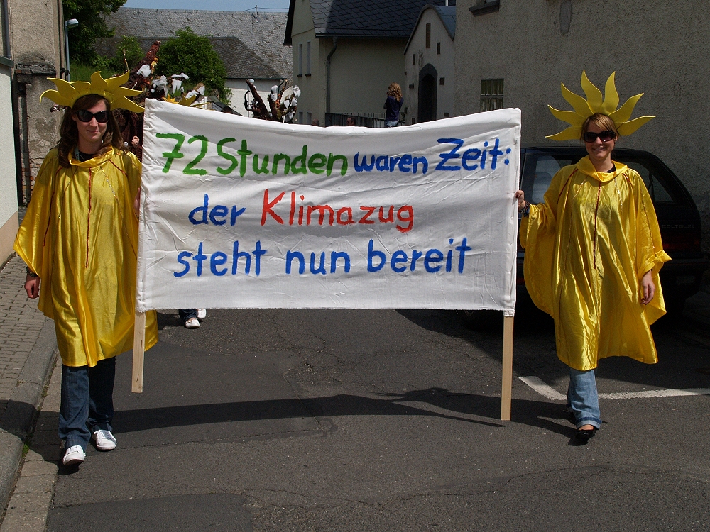 Vom 07. bis 10. Mai nahm die KaJu Rübenach/Bubenheim an der 72 Stunden Aktion, einer bundesweiten Aktion verschiedener Bistümer, teil. Sinn und Zweck der Aktion ist es, dass Jugendliche in kurzer Zeit ein soziales Projekt auf die Beine stellen müssen. Und so wurde uns donnerstags von Gemeindereferent Andreas Barzen die Aufgabe verkündet: Organisiert einen Umzug durchs Dorf, der sich mit dem Thema „Klimawandel“ und „Umweltschutz“ beschäftigt. Und fortan galt: 72 Stunden, eine Aufgabe, ein Ziel: die erste Rübenacher Klimaparade auf die Beine stellen.