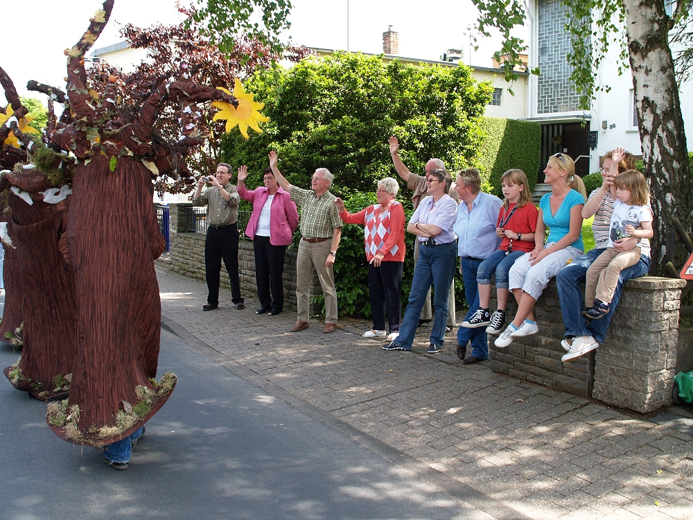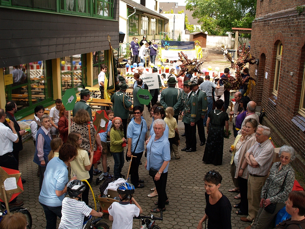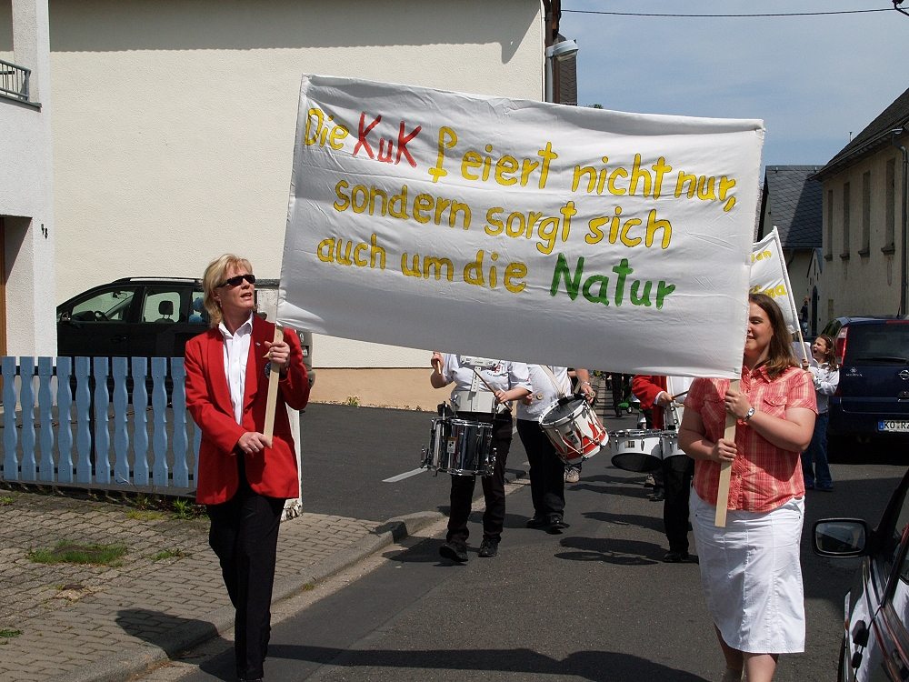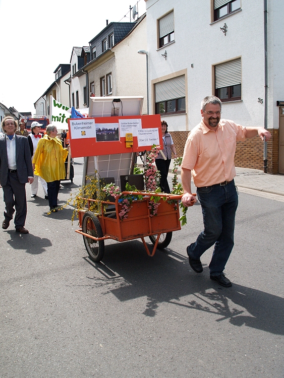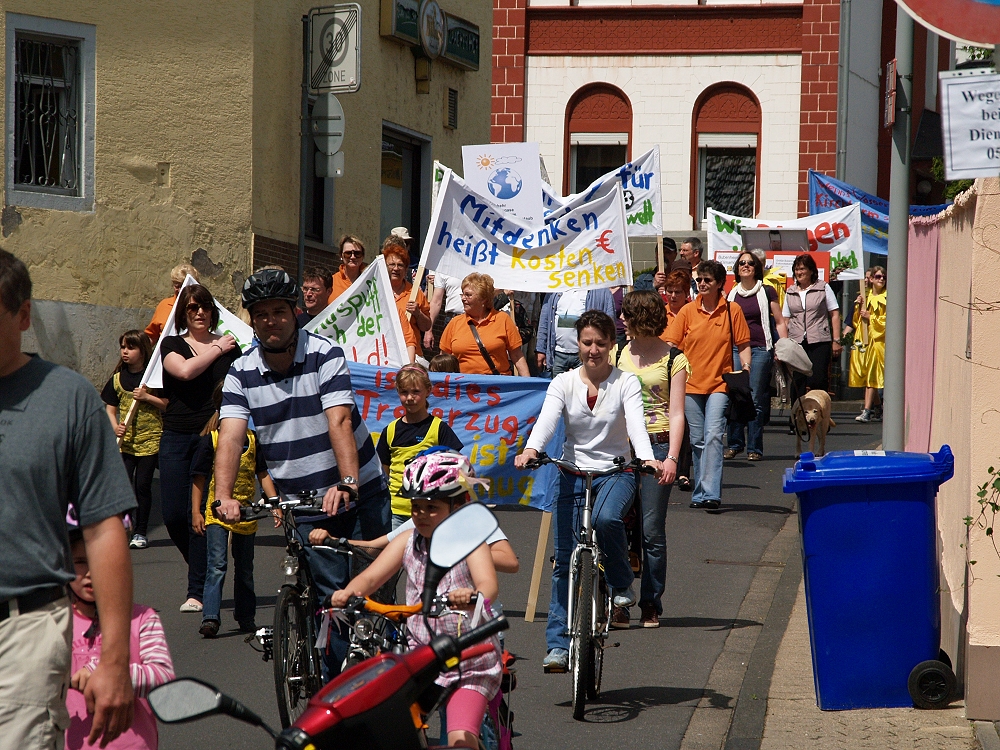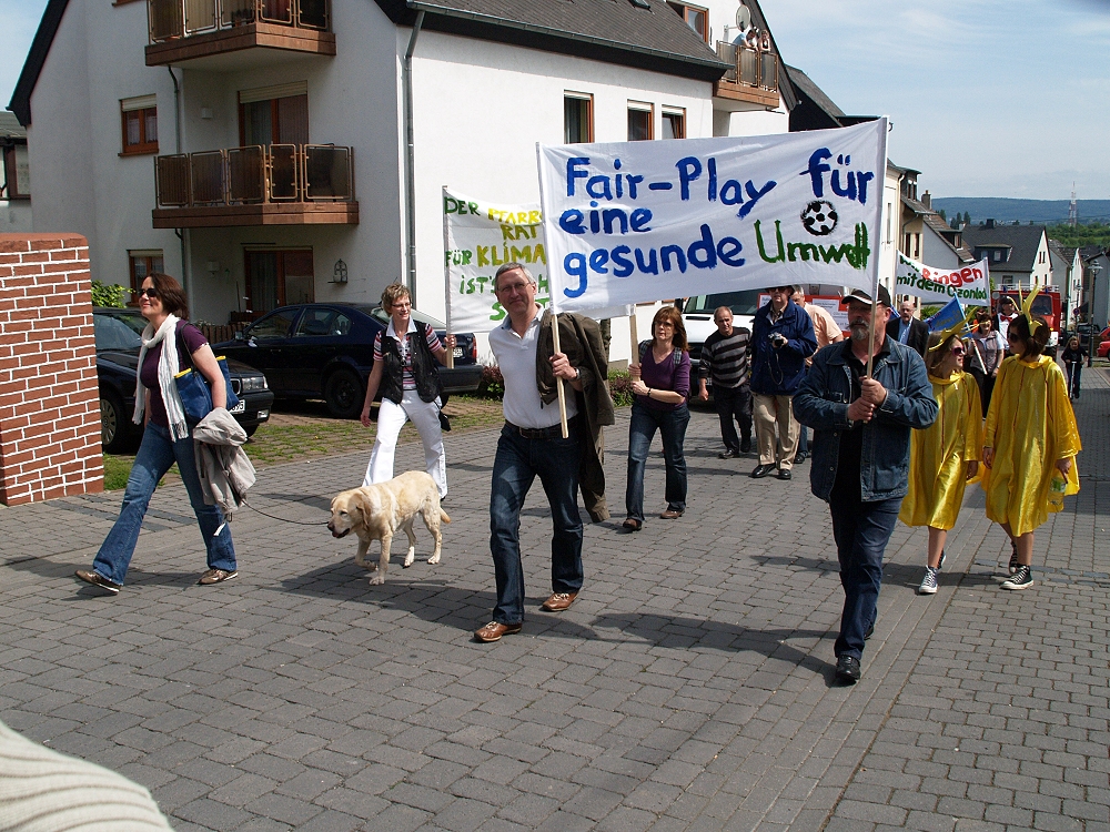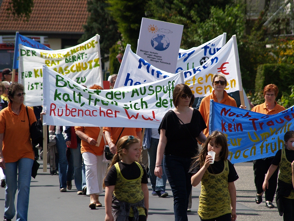 Und so konnte sich sonntags ein Zug durchs Dorf schlängeln, an dem rund 12 Vereine mit Abordnungen teilnahmen. Mit Bannern, Aktionsschubkarren und vielen mehr versorgt, zogen die Menschen durchs Dorf und bekannten sich zum Klimaschutz. Obwohl Muttertag war und die TUS spielte, säumten etliche Rübenacher den Straßenrand und jubelten dem Zug zu. Im Anschluss daran gab es im Pfarrheim St. Anna ein großes Fest. Als „Special“ gab es für jede Mutter ein Glas Sekt gratis. Bei Kaffee und Kuchen fand die Aktion ihren krönenden Abschluss.