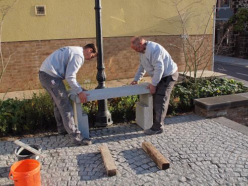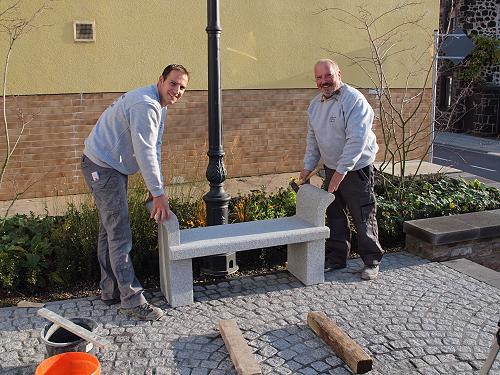 Mit der Aufstellung einer kleinen Granitbank am Möckedenkmal, vollzog der Förderverein „Rüwenacher Möck“ e.V. einen weiteren Schritt zur Vollendung des Platzes am „Kümmchen“. Was noch fehlt ist eine Fahrzeugabtrennung, damit der Platz nicht mehr als Parkplatz missbraucht wird. Auch eine Bodenplatte mit der Geschichte um die „Möck“ soll in naher Zukunft noch installiert werden. Erst dann sieht der Verein das Projekt als vollendet an.