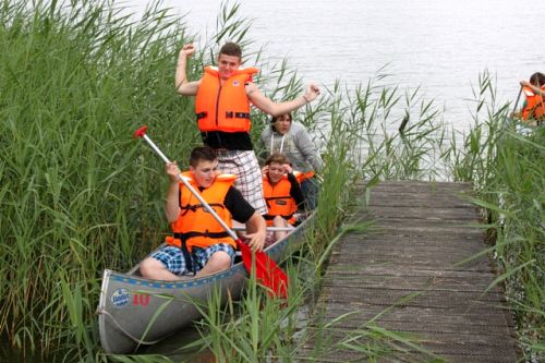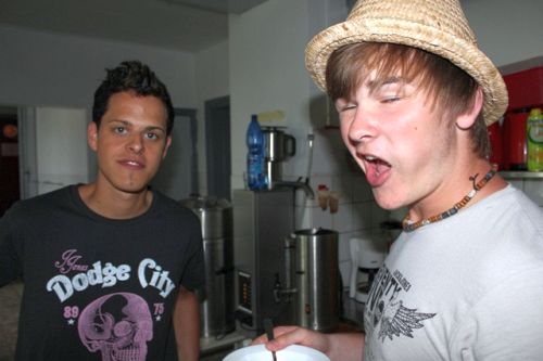 „Hier ist es mega latscho!“, begeisterten sich die 16 Jungs mit ihren 4 Mädels in ihrem Zuhause auf Zeit. Angemietet wurde ein Schulinternat, welches sich auf Musik-Tanz-Theater spezialisierte. Dementsprechend war auch die gehobene Ausstattung dieser Privatschule. In der Sporthalle konnte Fußball gekickt werden, im Fitnessraum wurden Möglichkeiten zum auspowern geboten und wer einfach nur relaxen wollte konnte sich im Saunabereich entspannen. Im Haus selber gab es Billiard, Kicker und genügend Sofaecken zum rumlümmeln. Die Zimmer waren alle zu Doppelzimmern eingerichtet und die Bäder waren komplett neu renoviert, eine ganze Etage war für uns ganz allein reserviert. Bei gutem Wetter konnte die Gruppe draußen auf der Wiese essen. Der Strand war nur 4km entfernt, führte an einem schönen See vorbei und konnte mittels eigenem Rad mehrmals täglich angefahren werden.