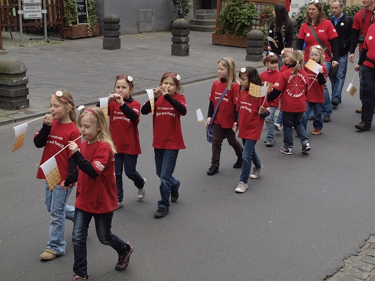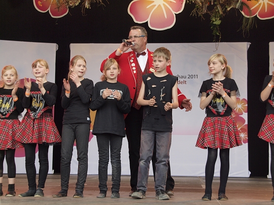 6000 Teilnehmer insgesamt wurden hier über den Tag verteilt von Moderator Manfred „Manni“ Gniffge, Oberbürgermeister Prof. Dr. Joachim Hofmann-Göttig und BUGA-Geschäftsführer Hanspeter Faas begrüßen. Ein Bühnenprogramm mitgestaltet von den Kindertanzgruppen „Silberfunken“ der K.u.K., den „Röschen“ der Fidele Möhnen und dem „Rüwwenacher Möckelied“ gesungen von Goswin Geisen, rundete einen fantastischen Veranstaltungstag ab.