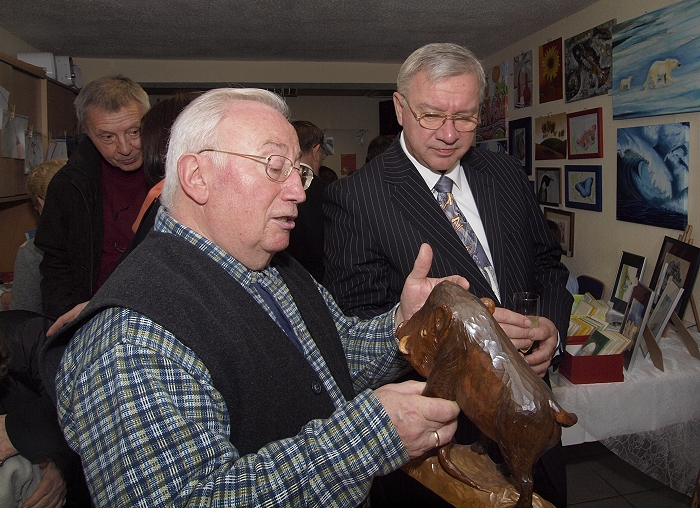 Ein besonderer Gast war sicher der Koblenzer Oberbürgermeister Prof. Dr. Joachim Hofmann-Göttig. Auf Einladung der BI ließ er es sich nicht nehmen, der Ausstellung einen Besuch abzustatten. Als kleines Begrüßungspräsent erhielt er von Wolfgang Springer eine selbst erstellte “OB-Kette”.