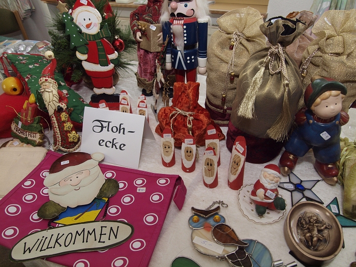 Für soziale Zwecke habe die Frauen der Handarbeitsgruppe St. Mauritius auch in diesem Jahr wieder fleißig gestrickt, gehäkelt oder gebastelt. Beim Adventsbasar im St. Anna Heim wurde den Besuchern wie schon in den Jahren zuvor, wieder eine große Auswahl an Advents- und Weihnachtartikeln geboten. Adventsgestecke und –kränze, genau so wie Holzfiguren, Sterne, Weihnachtsbaumschmuck oder die allseits beliebten Socken. Kaffe und Kuchen gab es auch und so bot sich Gelegenheit für die eine oder andere Unterhaltung. Der Erlös der Veranstaltung wird wieder für soziale Projekte verwendet.