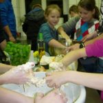 „An die Töpfe, fertig, los!“ Unter dieses Motto könnte man die November-Ausgabe des „Perfekten Kinderdinners“, das gestern Abend im Pfarrheim St. Anna stattfand, stellen. 30 Kinder und 10 Betreuer schnibbelten, bruzelten und kochten gemeinsam ein leckeres Dreigangmenü. Da wurde  aus dem „Kinderdinner“ schnell eine, im wahrsten Sinne des Wortes, „Küchenschlacht“, bei der so manches Ei und so manche Zwiebel auf der Strecke blieben. Zur Vorspeise gab es eine leckere, selbstgemachte Tomatensuppe mit Croutons. Im Hauptgang wurde Geschnetzeltes mit selbstgemachten Spätzlen gereicht und als Nachtisch lockte ein Apfel-Tiramisu.