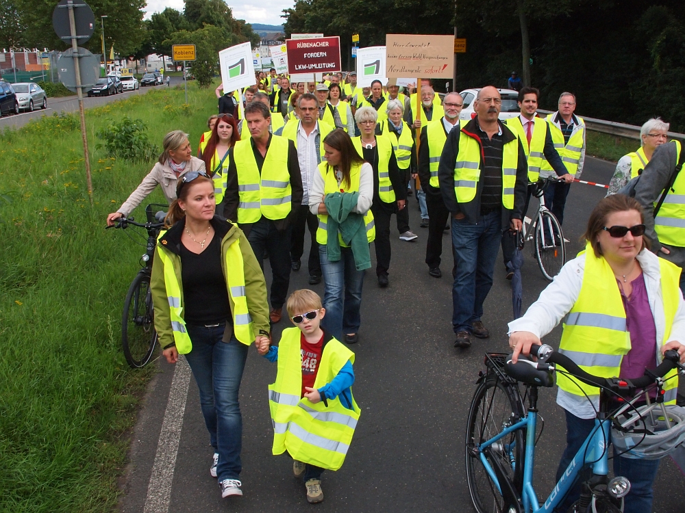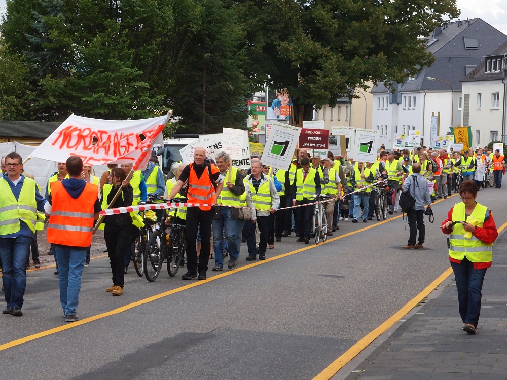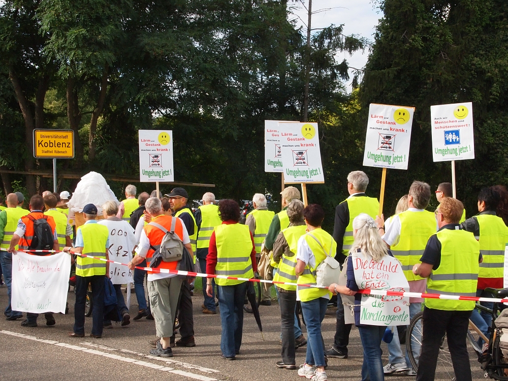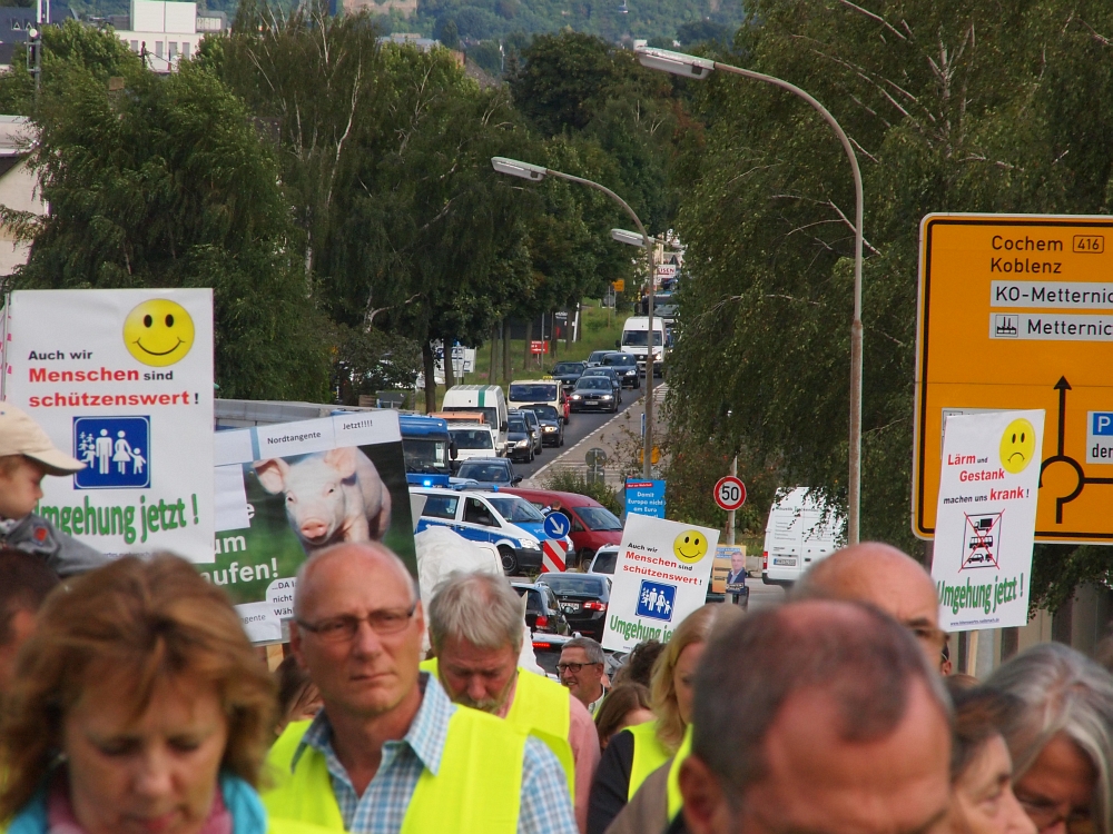Vom Metternicher Bahnhof aus zog der Demonstrationszug begleitet von der Polizei über die Rübenacher Straße am Lazarett vorbei durch Rübenach bis an die hiesige Grundschule. Der Verkehrsstau, der dahinter entstand, war entsprechend. Begleitet wurde die Veranstaltung u. a. von Koblenzer Ratsmitgliedern. Abschluss der Veranstaltung bildete eine Kundgebung, an der die Organisatoren der Initiativen sowie die politischen Vertreter