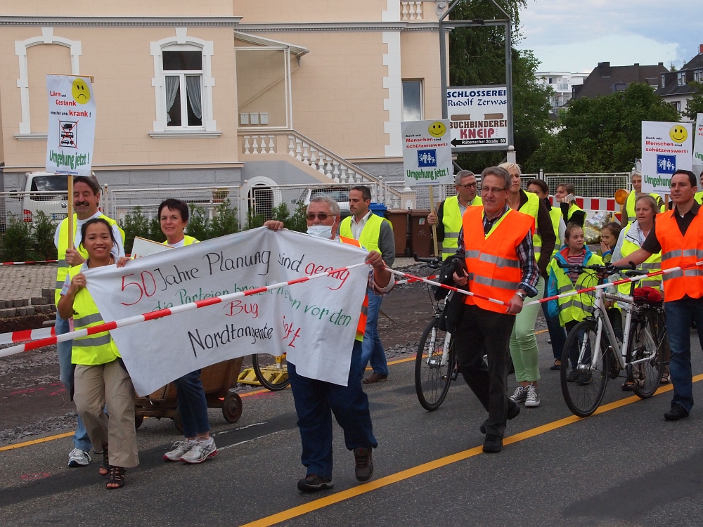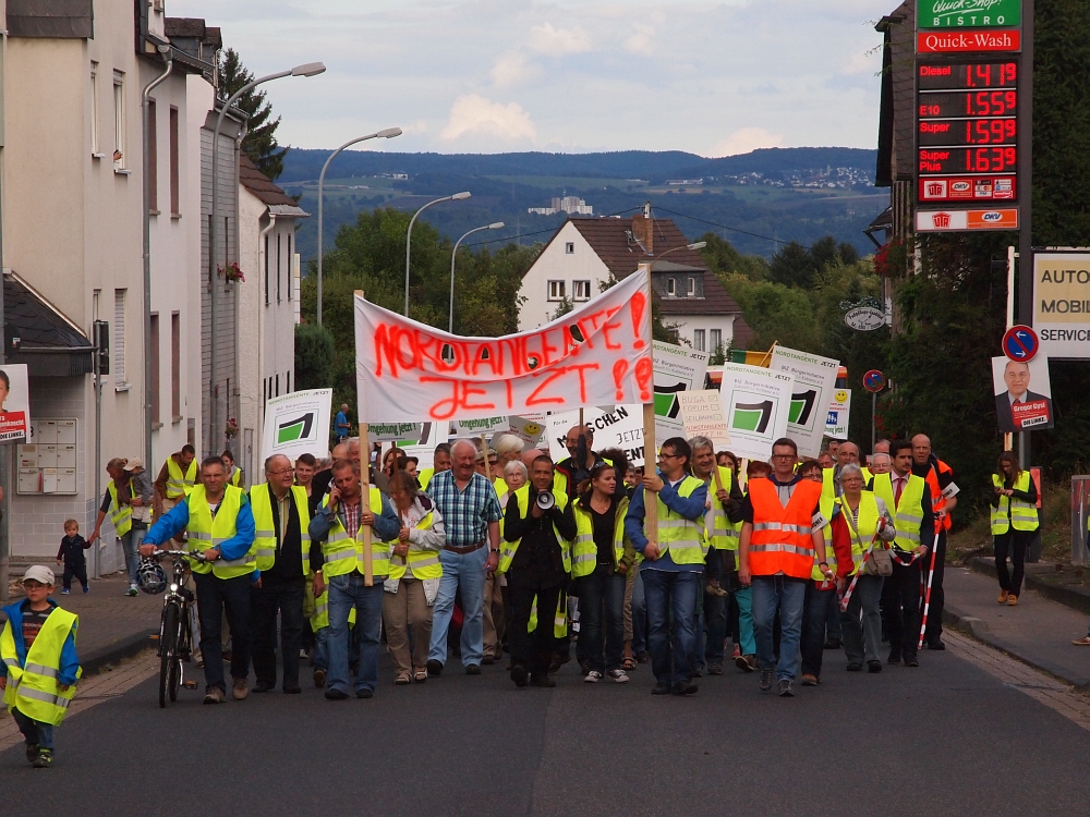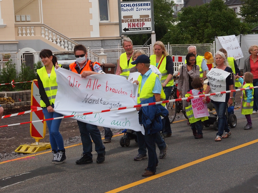 Die Bürgerinitiativen „Lebenswertes Rübenach“ und die Interessengemeinschaft „Metternicher Bürger“, veranstalteten am Montag ihre Demo zum angestrebten Bau der Nordtangente. Eine Vielzahl von Bürgern aus den beiden Stadtteilen nahm daran teil. Mit Rufen “wir wollen die Nordtangente jetzt”, Trillerpfeifen und Transparenten sorgten die Teilnehmer für die nötige Aufmerksamkeit. Die gewünschte Öffentlichtkeitswirkung jedenfalls dürfte damit als Ziel der Demo – wie von den Veranstaltern angestrebt – durchaus erreicht worden sein.
