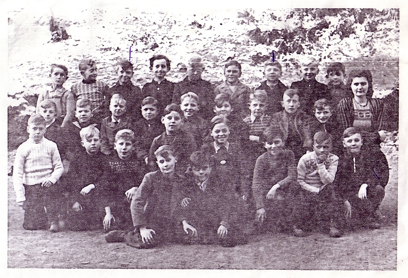 3.Reihe: Werner Rüppel, Wolfgang Bahn, Werner Leyendecker, Erich Schmitz, Norbert Zimmermann, Rudi Ohlig, Rolf Schütz, Heinz Hansen, Winfried Weinand, Lehrerin Frl. Juchem,