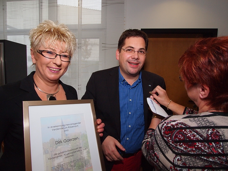 Wer jedoch die Laudatio von Vorjahresempfängerin Inge Becker verfolgte merkte bald, in welch vielfältiger Weise sich Dirk Goerzen hier in Rübenach immer wieder in das Ortsgeschehen einbringt. Ob Schule, Vereine oder bei Aktionen und Veranstaltungen, Dirk Goerzen ist seinem Heimatort in Punkto Unterstützung sehr verbunden. Wenn es um Belange in Rübenach geht, kann man auf ihn als Sponsor immer wieder zählen. Bereits mehrfach hat er – als nur ein Beispiel – nach den Beschädigungen der Möckeskulptur die Instandsetzungskosten übernommen und somit zum Erhalt des Denkmals maßgeblich beigetragen. Kosten die der Verein “Rüwenacher Möck” alleine nicht hätte schultern können.