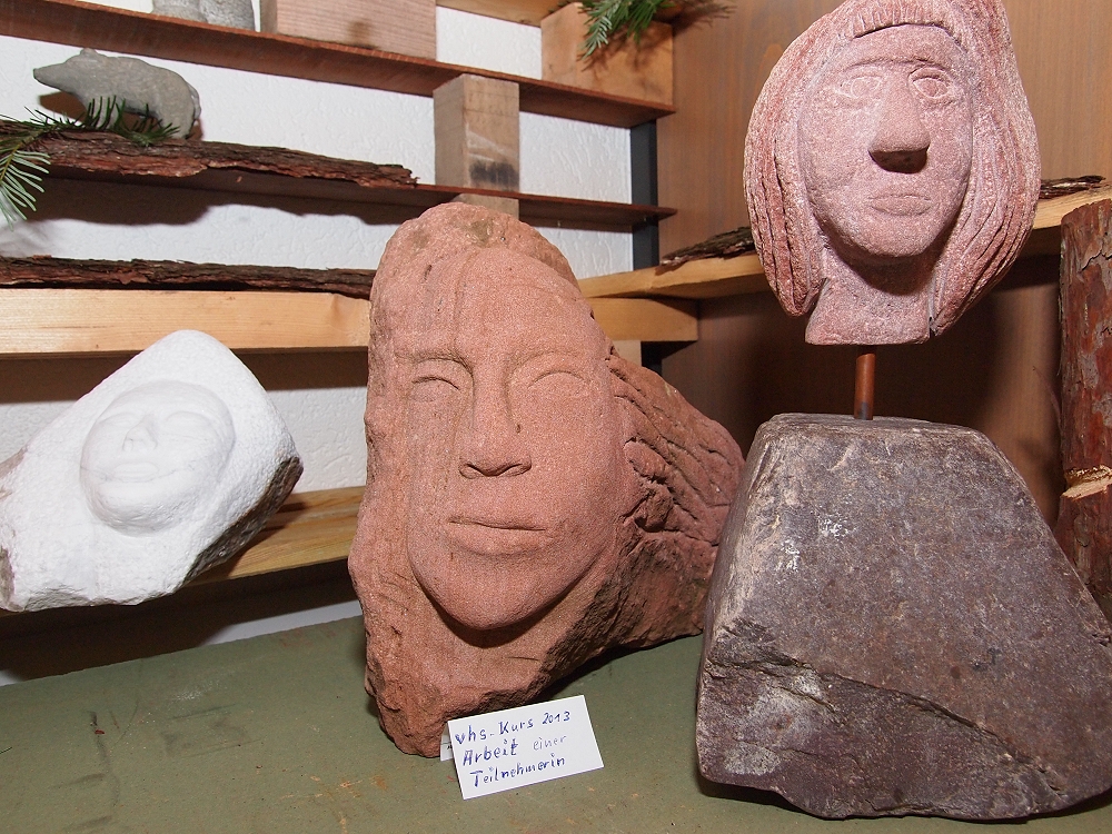 Bei Kaffee und Kuchen bot sich Zeit und Gelegenheit mit den Hobbykünstlern über ihre Werke und ihre Talente zu plaudern. Für die jüngeren Besucher wiederum bestand die Möglichkeit einmal die Handhabung einer Steinfräse auszuprobieren. So konnte sich jeder als Mitnahme seine eigene, kleine Skulptur gravieren.