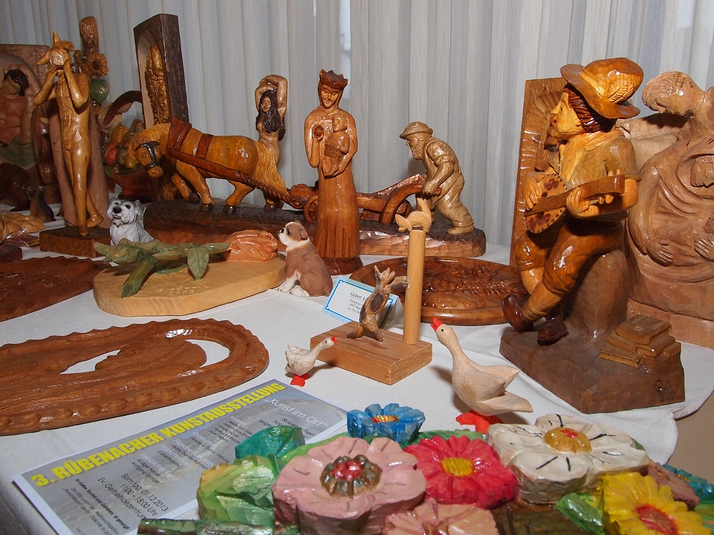 Es war bereits die 3. Ausstellung, die am vergangenen Sonntag von Rübenacher Hobbykünstlern im Ev. Gemeindezentrum auf die Beine gestellt wurde. Ein Querschnitt von Malerei, Holzschnitz- und Steinbildnerarbeiten, alle samt entstanden innerhalb der Pflege eines Hobbys oder der persönlichen Freizeitgestaltung. Porzellan- und Malerei in Öl oder Aquarell fanden beim Besucher gleichermaßen das Interesse, wie Figuren und Motive aus Holz geschnitzt oder in Stein gemeißelt. Werke, unterschiedlichster Art