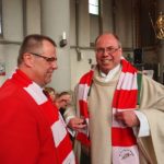 ganze Bild entsprechend ab. Ein Glanzpunkt war der Auf tritt von „Weihbischof “ Inge Becker. Mit ihren Auf tritt verwandelte sie das Gotteshaus vorübergehend in eine karnevalistische „Narrhalla“. K.u.K. Vorsitzender Goswin Geisen dankte am Schluss Pastor Herbert Lucas mit einem Vereinsschal für diesen freudigen Gottesdienst.