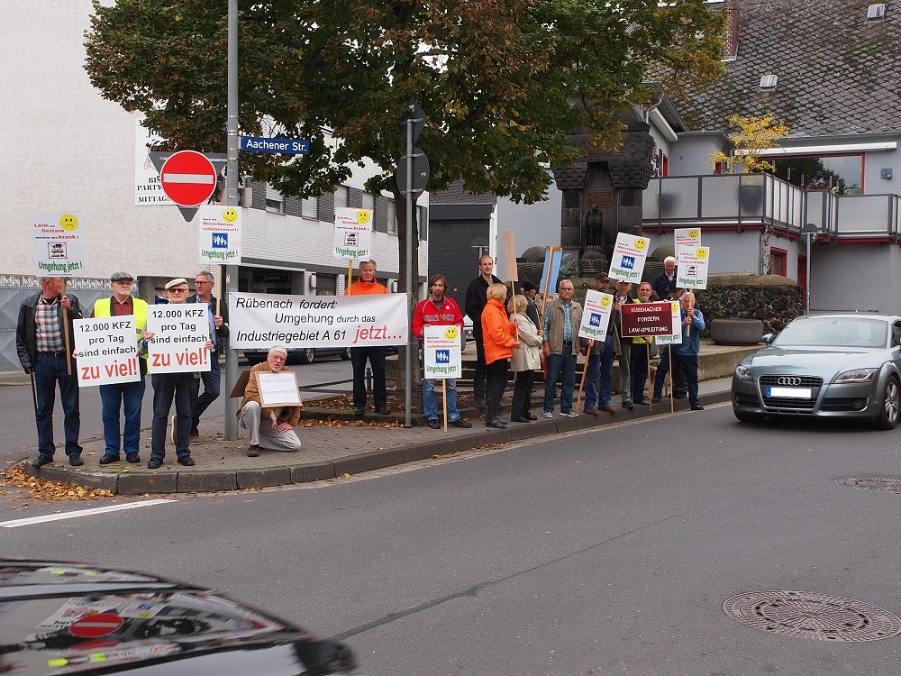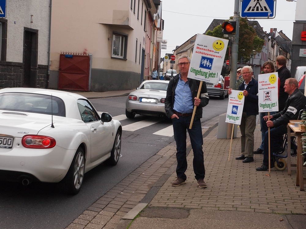 Das Thema ist nicht neu, schon vor sieben Jahren wurde die Industriestraße hinter der A 61 den Rübenachern als Umgehungsstraße angekündigt – nun ist die Straße fertig, aber als Umgehung wurde sie bisher nicht benutzt, ein Durchfahrverbot für Lastkraftwagen nicht eingeführt. Gleichzeitig sollten aber auch die Kraftfahrer auf die Möglichkeit der vorhandenen Umgehung hingewiesen werden. Diese reagierten übrigens überwiegend positiv, die Fahrer der Linienbusse, die das Verkehrschaos in Rübenach ja aus täglicher Erfahrung kennen, hoben meist anerkennend den Daumen. Allen, denen das nicht gefiel, sei gesagt: Drei Stunden Protest im Monat werden Sie aushalten müssen. Die BI wird die Aktion nämlich auf jeden Fall wiederholen.