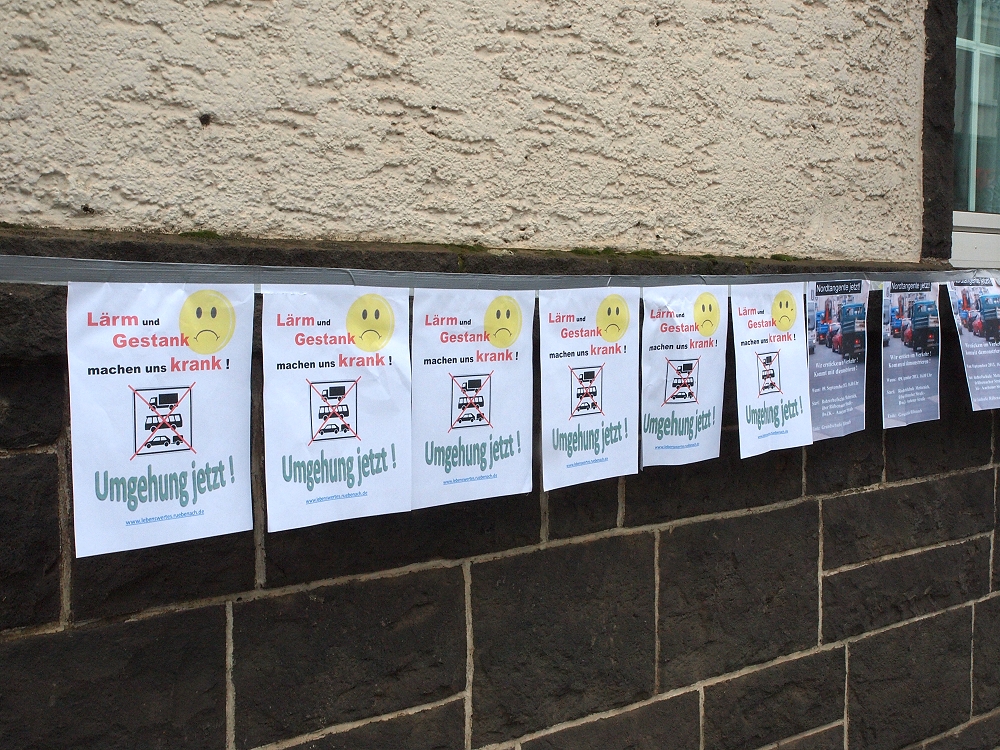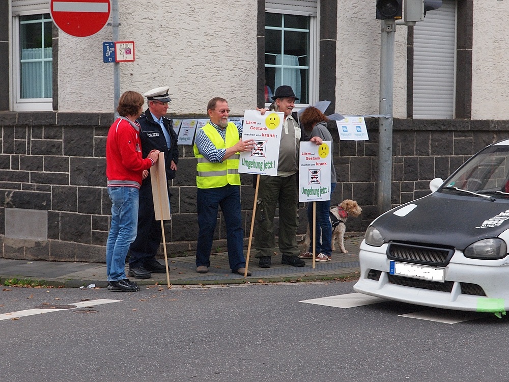 Drei Stunden lang stand die BI am Freitag Nachmittag als Mahnwache an der Aachener Straße und löste dabei ein kleines Verkehrschaos aus. Sehr erstaunt waren einige Teilnehmer wie viele Fahrzeuge sich tatsächlich zwischen 14.00 und 17.00 Uhr durch den Ort quälen, darunter auch Lkws bis hin zum 40 Tonner aus Belgien. Aber damit wurde auch deutlich, wie wichtig eine Umgehungsstraße für den Durchgangsverkehr ist.
