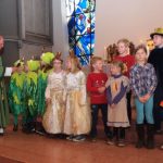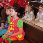 Rüwwenacher Platt und die Predigt vorgetragen in Reimen zeigte Pastor Herbert Lucas, Inge Becker und Andreas Barzem, dass es auch in der Kirche viel zu Lachen gibt. Leider nahmen nur wenige Kinder an der Messe teil. Dafür kamen jedoch etliche Erwachsene in Kostümen, sowie die Möhnen und K.u.K. in ihren Roben oder Uniformen. Zum Schluss verkündete Herbert Lucas das er jetzt 10 Jahre Pastor in St. Mauritius sei. Inge Becker überreicht im als Jubiläumsgeschenk eine kleine Maus (!?) und erhielt dafür viel Beifall von den Anwesenden.