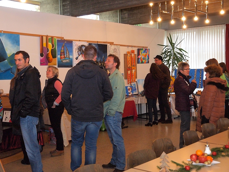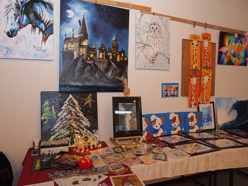 Traditionell am 1. Adventssonntag stellten die Rübenacher Hobbykünstler wieder ihre neuesten Werke der Öffentlichkeit vor. Unter dem Motto „Kunst bei Kaffee & Kuchen“ gab neben dem Anschauen selbst, reichlich Gelegenheit Gespräche mit den jeweiligen Ausstellern über ihre Werke zu führen. Die Palette reichte dabei von Gemälden in Öl, Aquarell und Acryl über Steinbildner- und Stein-Arbeiten bis hin zu selbst gefertigten Teddybären.