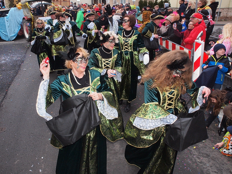 Etliche sonstige Gruppen mischten den Zug gleichermaßen mit auf. Ein besonderer Leckerbissen bot wieder die „Martinself“. Mit ihren „Steampunk“ Kostümen und dem dazu gehörendem Motivwagen hatten sie sich wieder etwas ganz Spezielles einfallen lassen. Unter dem Slogan „Die Schützen gondeln im Jubiläumsjahr vom Brückerbach bis nach Venezia“, machte die Rübenacher Schützenbruderschaft auf ihr 175-jähriges Vereinsjubiläum aufmerksam. In ihren venezianischen Gewändern boten auch sie ein beeindruckendes Bild.