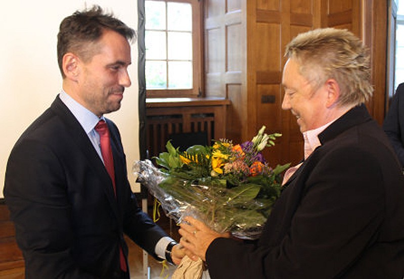 Oberbürgermeister David Langner gratuliert der neuen Bürgermeisterin Ulrike Mohrs nach ihrer Wahl durch den Stadtrat. Foto Stadt Koblenz