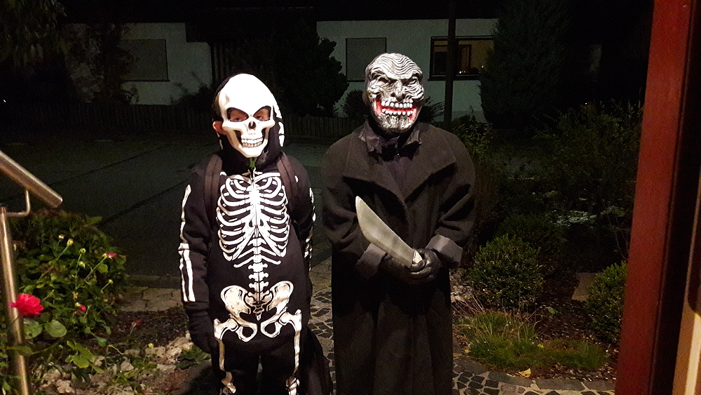 Am Vorabend zum 1. November waren sie wieder unterwegs. Rübenacher Zombis versetzten am Halloweenabend wieder so machen Hausbewohner in Angst und Schrecken. Kostümiert als Gruselmonster oder Sensenmann forderten sie mit „Süßes oder Saures“ ihren Tribut ein. Auch bei der Redaktion unser-ruebenach.de wie auch in der Nachbarschaft klingelte es mehrmals an der Haustür und Schokoriegel, Bonbons, etc. wechselten zum Schutz gegen „Saures“ den Besitzer. Aber alle Kids – und dies ist aufgefallen – bedankten sich artig. Rübenacher Halloweenfans sind wohl erzogen!