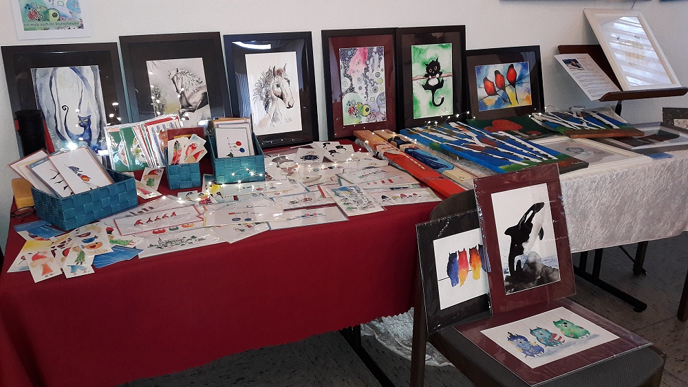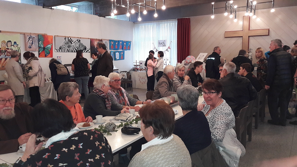 Die Ausstellung der Rübenacher Hobbykünstler am Sonntag, 04. November stieß auch diesmal wieder auf ein reges Interesse. Die Hobbylisten hier vor Ort stellten im Evang. Gemeindezentrum bereits zum 8. Male ihre neuesten Werke aus. Bilder gemalt in Acryl, Öl oder Aquarell, Keramikarbeiten, Steinbildnerkunst oder handgefertigte Advent- und Weihnachtsartikel gab es in vielfältiger Weise zu bestaunen oder auch zu kaufen. Neben Kaffee und Kuchen konnten sich die Besucher über die  jeweiligen handwerklichen Techniken oder die Werke selbst informieren.