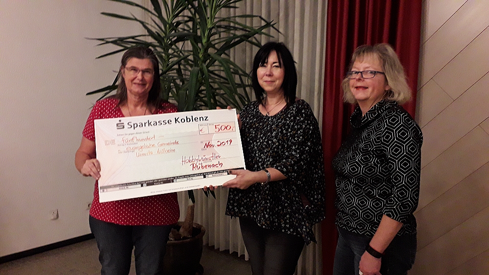 Mit dieser Überschrift hatte die Bürgerinitiative „Lebenswertes Rübenach e.V.“ zum Besuch der Hobby – Kunstausstellung im Haus der Begegnung in Rübenach geworben. Und die Besucher kamen in großer Zahl. Als Ergebnis konnte der evangelischen Diakonie ein Scheck über 500,00 € übergeben werden. Angesichts dieses Erfolges wurde spontan die Wiederholung der Ausstellung im nächsten Jahr beschlossen.