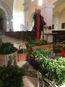 In der kleinen Andacht erinnerte Pfarrer Lucas an den Einzug Jesu in Jerusalem, bei dem die Menschen dichtgedrängt an den Straßen stand und Jesus zujubelte. Wie anders sei die Situation gerade im Moment auf der ganzen Welt: Menschen dürfen nicht mehr nahe zusammenkommen, müssen Distanz halten und Feiern wie an diesem Einzug sind überhaupt nicht mehr gestattet.