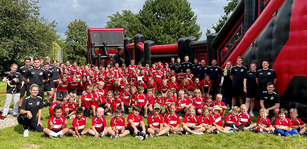Neben den morgendlichen Trainingseinheiten auf dem modernen Kunstrasen-Gelände zählte hierzu auch das Nachmittagsprogramm auf der vereinseigenen Tennisanlage mit dem „Gladiator Run“ – einer der größten Hüpfburgen Deutschlands (50 Meter lang und bis zu 7 m hoch).