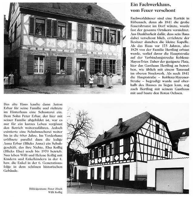 Im Oktober besuchte Carl Hertling dann mit seinen drei Kindern Rübenach. Hier schauten sie nach den Häusern, wo die Vorfahren einmal gelebt haben. Dabei kamen sie u. a. ins Gespräch mit Willi Kollig und seiner Familie, die jetzt in dem ehemaligen Hertling Haus in der Alte Straße wohnen. Auch der ehemalige „Gasthof zum roten Ochsen“ (heute Restaurant Adana 5), die anschließende Gaststätte von Jakob-Wilhelm Hertling sowie das ehemalige Wohnhaus Hertling in der Aachener Straße 123 besuchten sie. Danach besuchten Sie noch den Rübenacher Friedhof, fanden aber hier keine Hinweise mehr.