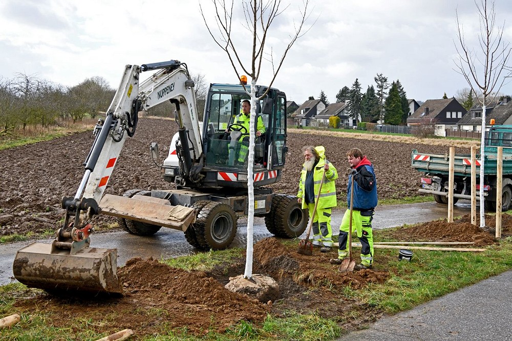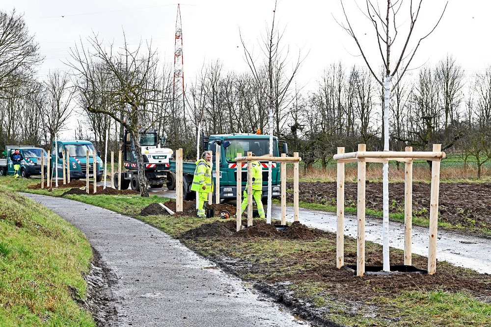 Auf der rechten Seite am Fußgänger- und Radweg Richtung Lazarett sind elf Ulmen (Rüster) gepflanzt worden. Sie arrondieren die bestehenden Bäume und gelten als Ausgleich für überalterte Bäume.