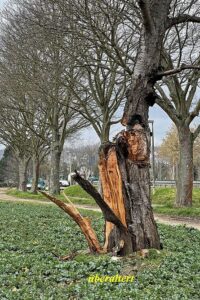 Durch das jahrzehntelange Ulmensterben wurde europaweit der Ulmenbestand sehr stark reduziert. Die Krankheit wird durch einen Pilz verursacht und durch den Ulmensplintkäfer von Baum zu Baum übertragen. Durch Züchtungen wurden pilzresistente Ulmen geschaffen, die auch hier in Rübenach eingepflanzt wurden. Es handelt sich um die Sorte „New Horizon“ der Marke resista.