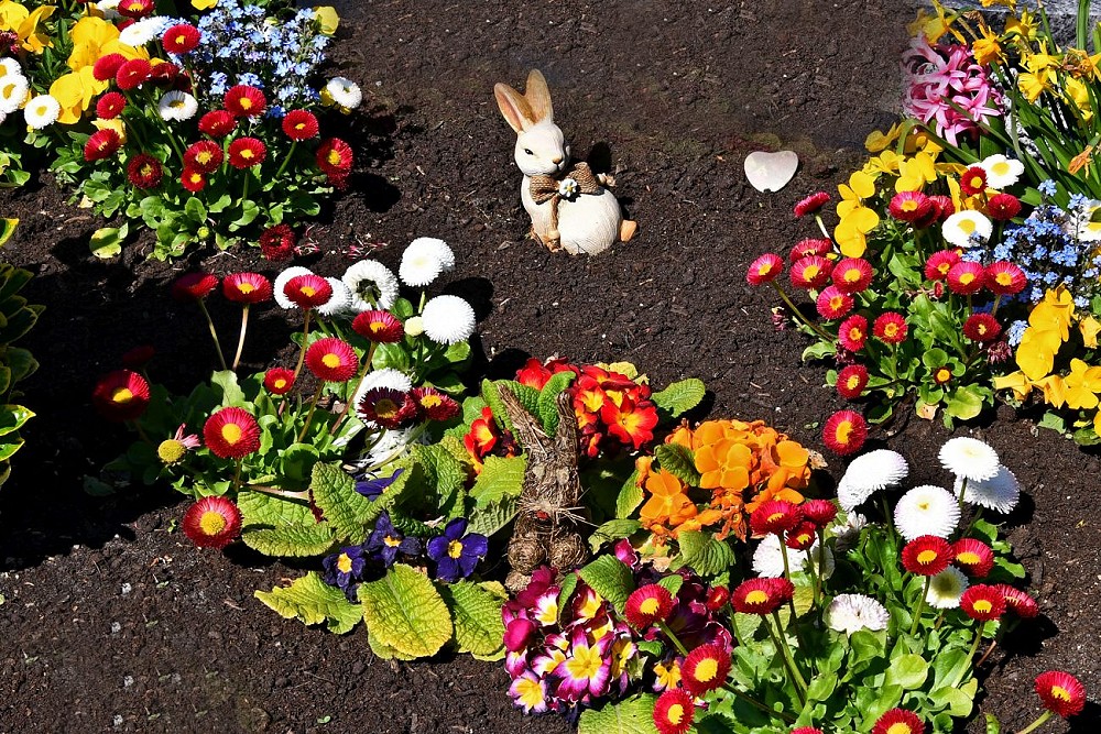 Ostern ist bei Christen das höchste Fest im Kirchenjahr. In der Karwoche werden nach den Wintermonaten die Gräber neu hergerichtet. Es wird überall gepflanzt und mit frischen Blumen geschmückt. In diesem Jahr ist auch die Natur pünktlich zu Ostern aufgeblüht. Gänseblumen und Löwenzahn überziehen den gesamten Friedhof. In der Kirche ist der Altarraum für die Ostertage vorbereitet. Die Osterkerze mit ihren Symbolen Kreuz, Jahreszahl sowie „Alpha“ und „Omega“ steht vor dem Altar und der Weihwasserbehälter ist auch gefüllt. Bei dem angenehmen Osterwetter macht bei den Kindern das Ostereiersuchen viel Spaß und ansonsten auch bei allen ein Spaziergang in der Frühlingssonne.