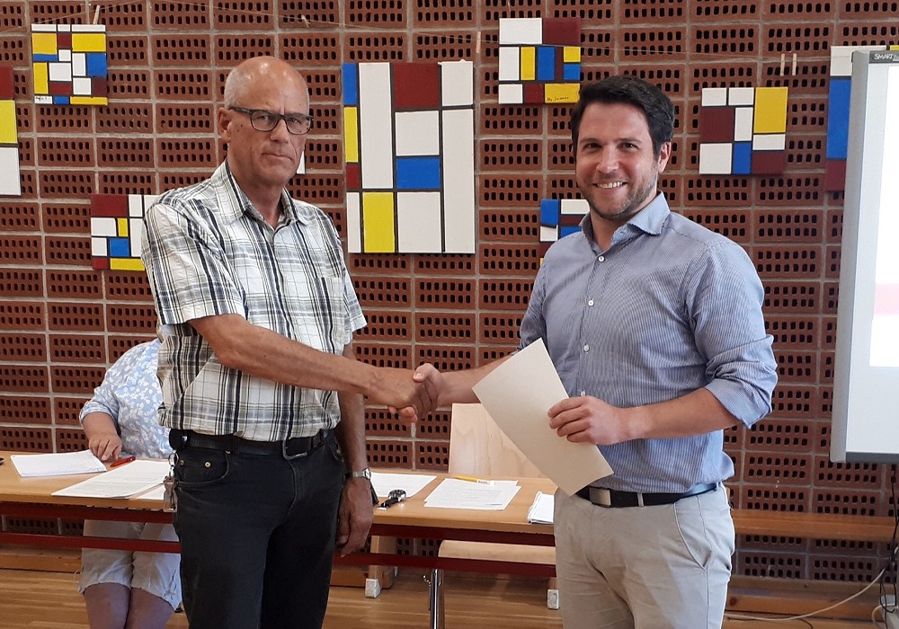Zu Beginn der Sitzung wurde mit Wolfgang Pelz (SPD) ein neues Ortsbeiratsmitglied durch Ortsvorsteher Thomas Roos vereidigt. Foto Ortsverwaltung Rübenach