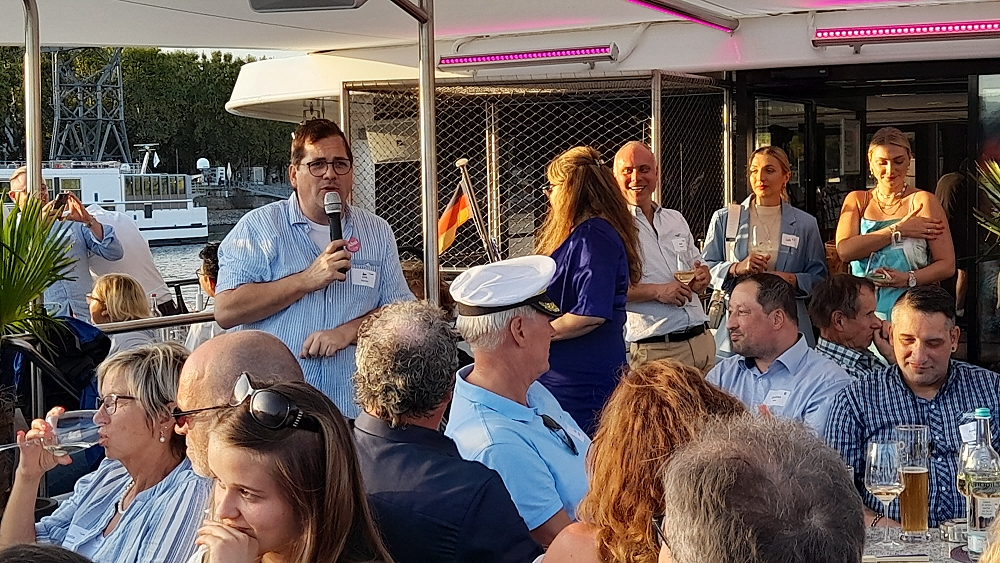 Mit dem Fahrgastschiffe „La Paloma“ ging es bereits vormittags mit einem ersten Teil der Gäste auf die Rundreise Richtung Loreley. Auch das Wetter war in Feierlaune, sodass ein Großteil der Gäste zur Abendfahrt nach Winningen weiterhin an Bord blieb. Dirk Goerzen hatte den verspäteten Termin dieser Feier zweifelfrei gut gewählt. Am Deutschen Eck fand an diesem Abend ein Konzert der Band „Santiano“ statt, welches die Schiffstour zudem mit einem kleinen Zwischenstopp an der Moselmündung, musikalisch begleitete.