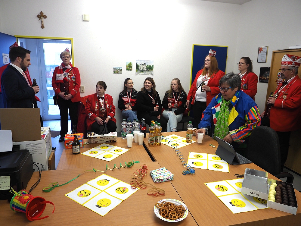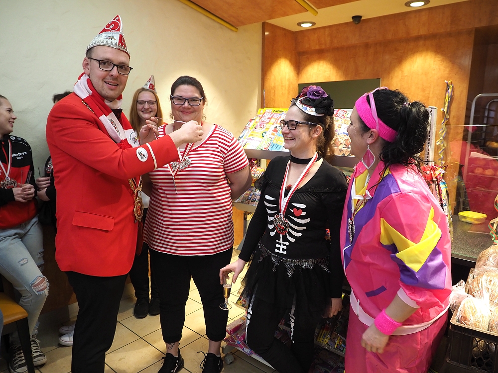 Im Gegenzug gab es für die Karnevalisten dann wie überall bei den Besuchen als kleine Wegzehrung Flüssiges wie auch sonstige Leckereien in fester Form. Nach der rund vier stündigen „Stippvisite“ und dem Verbreiten von karnevalistischem Frohsinn, fand der Abschluss dann im Adana 5 statt.