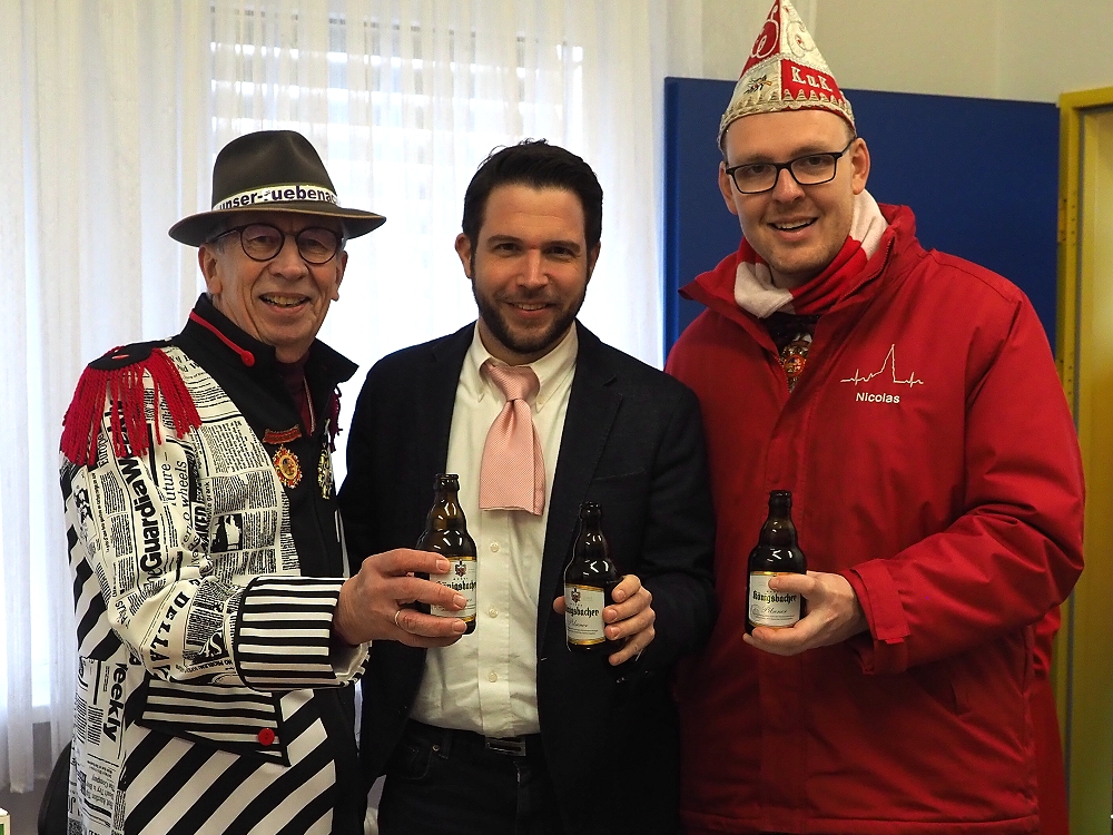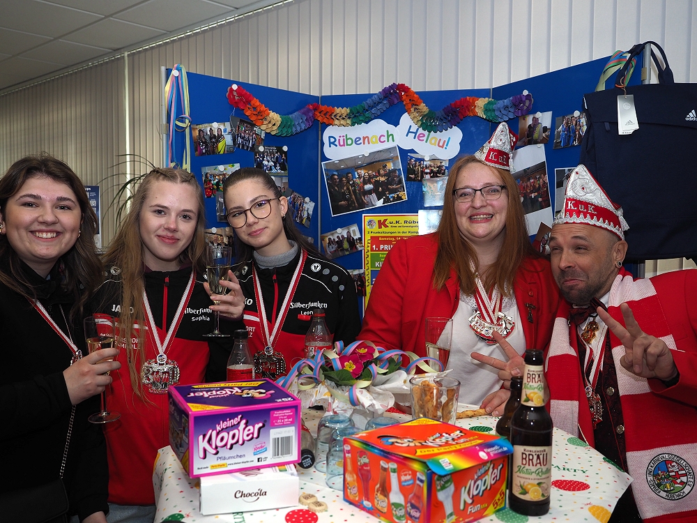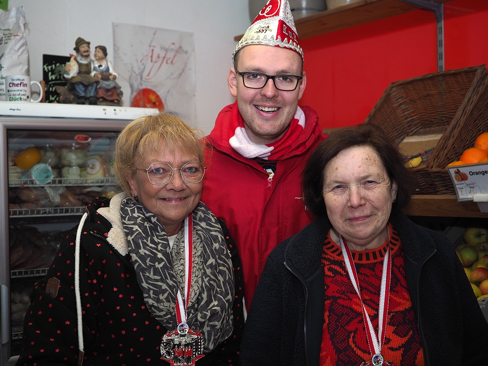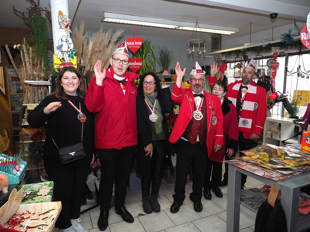Bei den Besuchen in der Bäckerei Lohner, im Rübenacher Lädchen, bei Perscheid´s, der Blumeninsel, den beiden KiTas, Sparkasse und Volksbank sowie in der Ortsverwaltung, wurde jeweils durch K.u.K. Sitzungspräsident Nicolas Keßelheim und unter einem dreifachen „Rüwwenach Helau“, der diesjährige Sessionsorden sowie für die KiTa-Kits Süßes zum Schnuckeln überreicht.