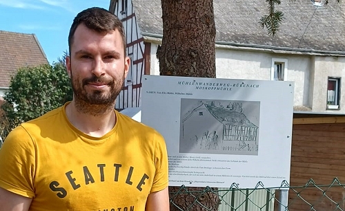 Auf diesem Weg ist die BI wieder ein schönes Stück vorangekommen. Nebenstehendes Foto zeigt Daniel Moskopp, Sohn des gegenwärtigen Besitzers Günter Moskopp vor dem Familienbesitz, der „Moskopp-Mühle“ in der Mühlenstraße. Die Mühle trägt den Namen dieser Familie seit 1890, erbaut wurde sie 1631 von Philpp-Lothar zu Eltz.