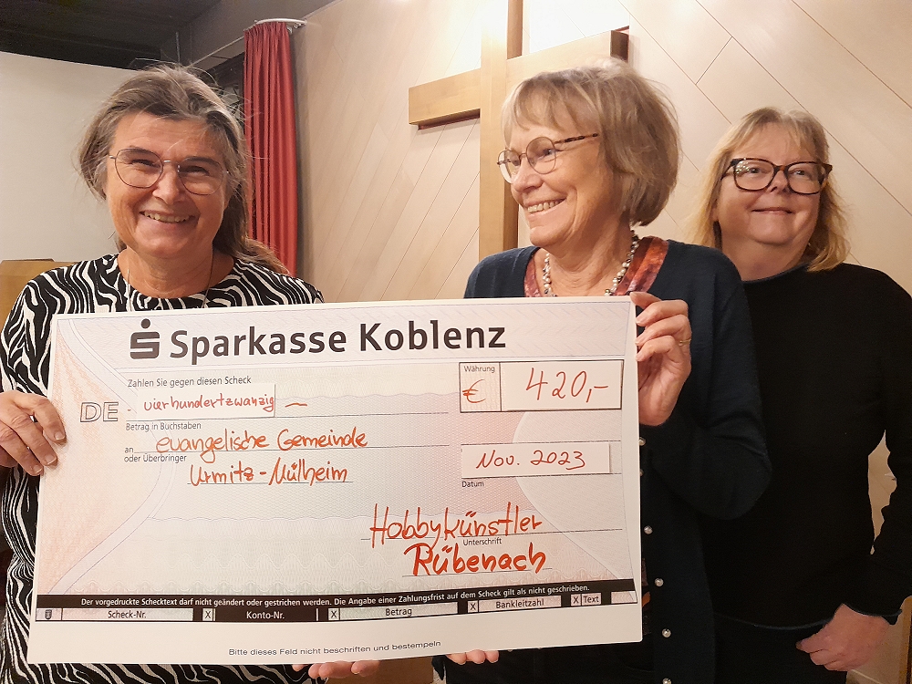Wie bei allen bisherigen Ausstellungen war es beabsichtigt der evangelischen Kirche für die Nutzung ihrer Räumlichkeiten eine Spende zukommen zu lassen. Die belief sich in diesem Jahr auf 420,- € und soll der Jugendarbeit der ev. Diakonie zugute kommen.