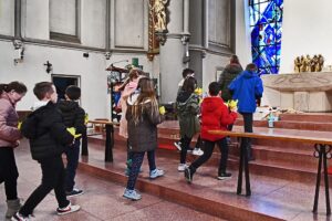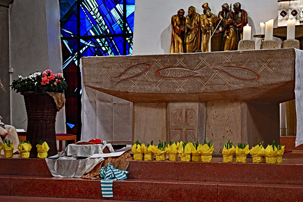 Was war denn am Samstag nach Aschermittwoch in der Kirche in Rübenach los? Wusste man dort nicht, dass Fastnacht vorbei war und die Fastenzeit begonnen hatte? Man sah allerlei Uniformen in der Kirche. Die meisten waren grün, aber einige waren auch schön bunt und sogar am Altar zu sehen. Dann lagen da noch jede Mange Süßigkeiten vor dem Altar, umrahmt von gelb verpackten Blumenzwiebeln. Und natürlich als Wichtigstes gab es die Kinder, die alles gut gelaunt und mit viel Freude dort abgelegt hatten. Ja, das konnte doch nur eine reichlich verspätete Fastnachtsfeier sein, oder?