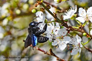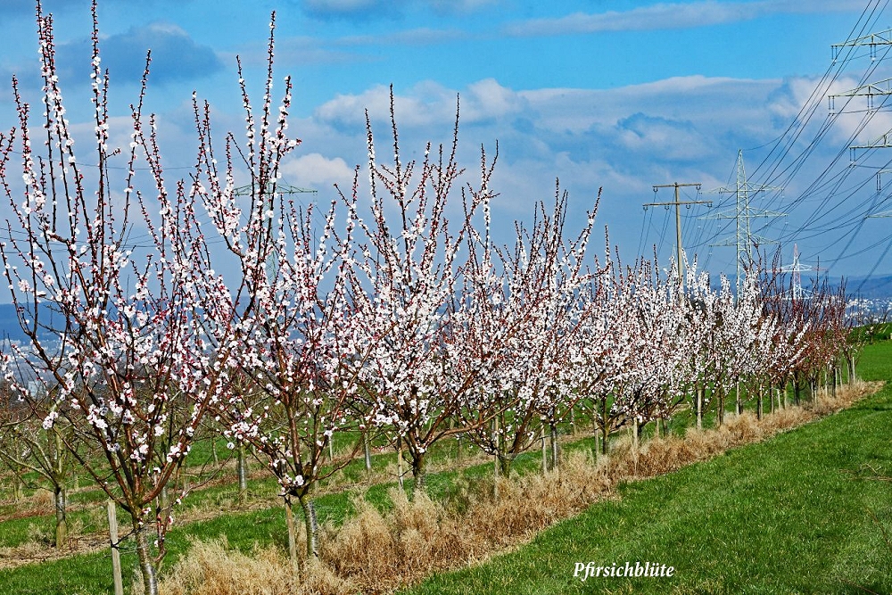 Während sich die Pfälzer an der Mandelblüte erfreuen, sind hier die rosaroten Blüten der Pfirsiche zu bewundern. Die frühen Sorten blühen bereits und werden hoffentlich von Spätfrösten verschont. Hummeln, Honig-, Wild- und Holzbienen waren auch schon unterwegs.