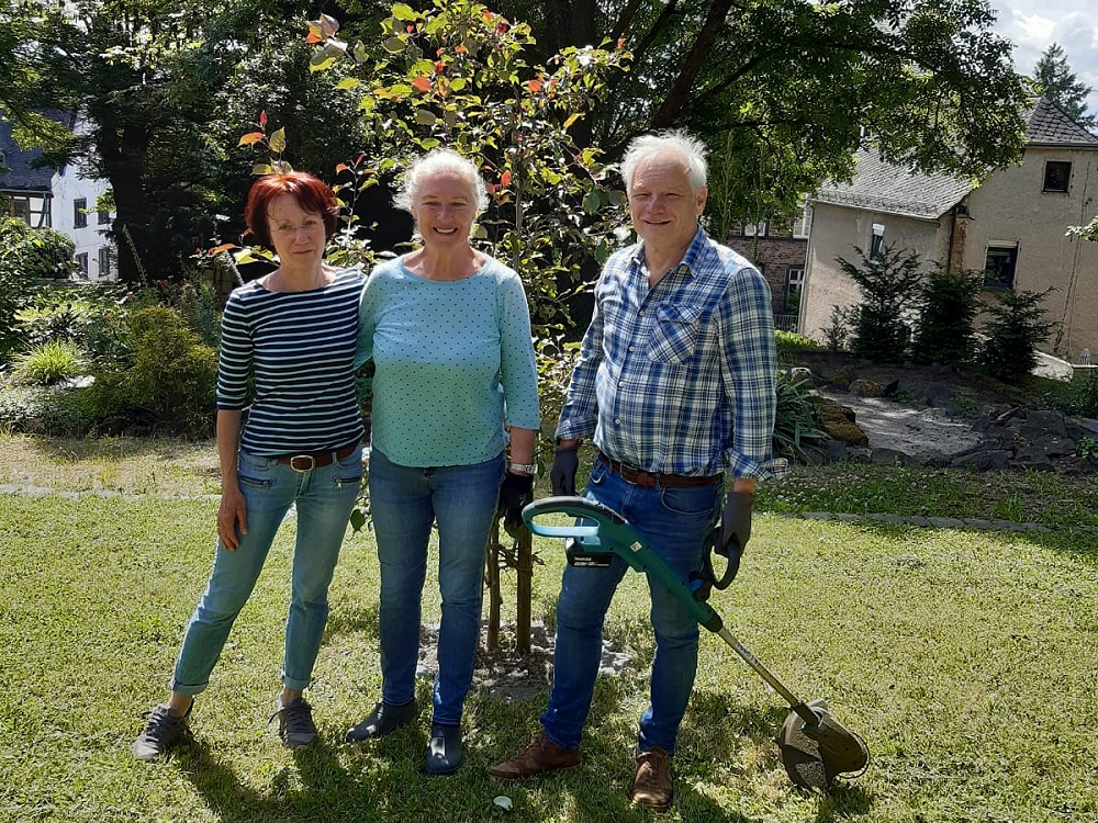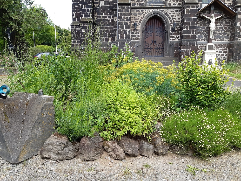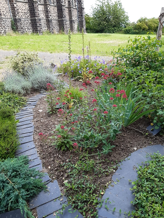 Nach langem und unstetigem Wetter und viel Regen konnte das Bibel- und Friedensgartenteam Christa & Willi Thone und Monika Sauer den Garten endlich gründlich bearbeiten. Wucherndes wurde zurückgeschnitten, Rasen gestutzt und die Blumen, besonders die Rosen, gepflegt. Ein besonderer Dank geht an die Handarbeits– und Bastelgruppe St. Mauritius, die uns mit einer Spende für die Anschaffung junger Pflanzen unterstützten. Das Team wünscht allen Besuchern des Gartens eine ruhige, schöne und erholsame Sommerzeit.