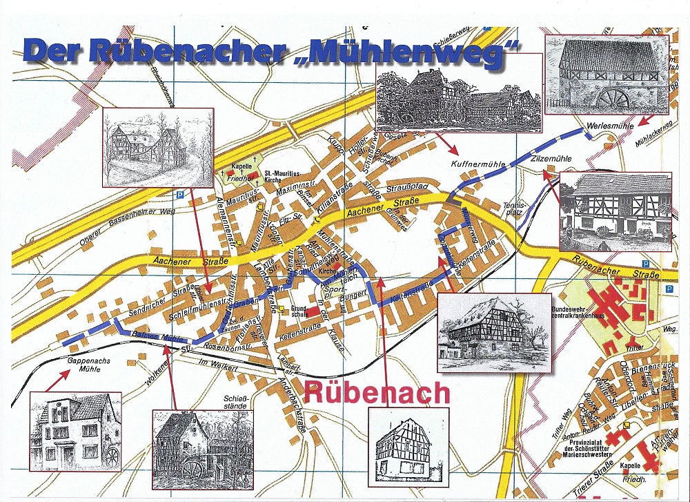 In Rübenach gab es einst 8 Wassermühlen, die vom Brückerbach und Anderbach betrieben und auf der Internetseite der Bürgerinitiative “Lebenswertes Rübenach e.V.” beschrieben sind. Seit Jahren bemühte sich die BI diese Mühlen durch einen Wanderweg zu verbinden und damit an das historische Erbe zu erinnern. Das Ziel war, bis zum 1250-Jahres-Jubiläum im nächsten Jahr, den “Mühlenweg” fertig zu stellen. (weiterlesen)