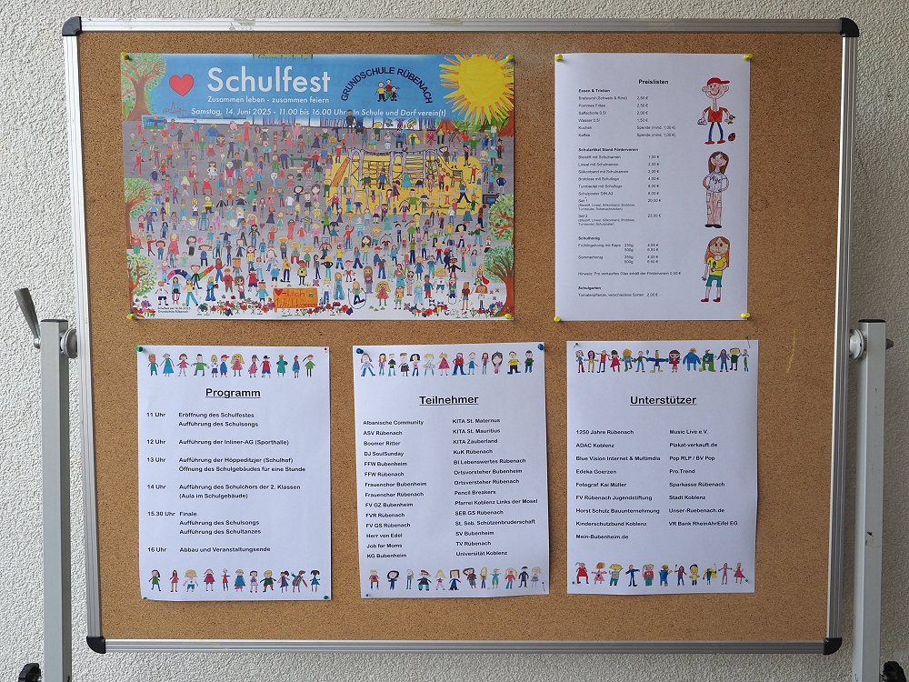 Da hatte das Schulteam um Schulleiter David Janser passend zum 1250-jährigen Ortsjubiläum was ganz Großes auf die Beine gestellt. Unter dem Motto: „Zusammen Leben – zusammen Feiern, in Schule und Dorf verein(t)“, wurde rund um die Grundschule Rübenach ein Schulfest geboten, dass seines Gleichen wohl weit und breit suchen dürfte. Etliche Vereine und Einrichtungen, wie auch Dienstleister aus dem schulischen Einzugsgebiet Rübenach und Bubenheim, haben sich an diesem Fest beteiligt. Alles was für die Kids vor Ort angeboten, begeistern und von Interesse war, konnte unter fachlicher Anleitung an einer Vielzahl von Stationen ausprobiert werden.