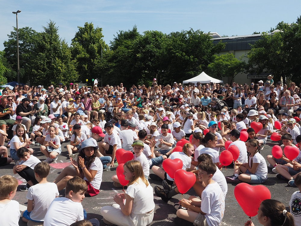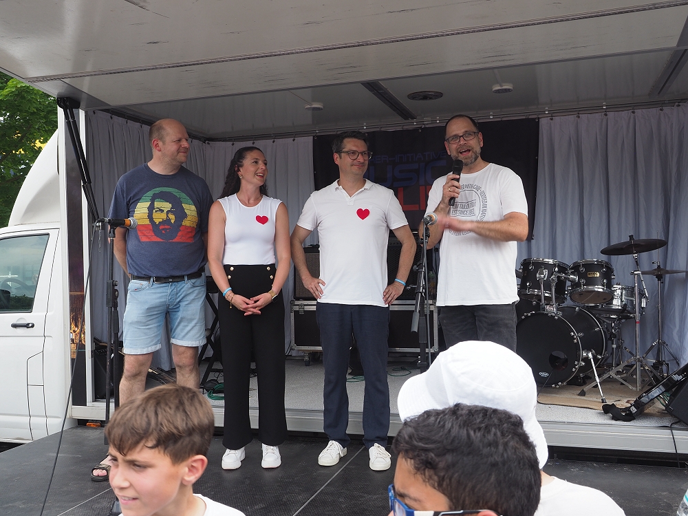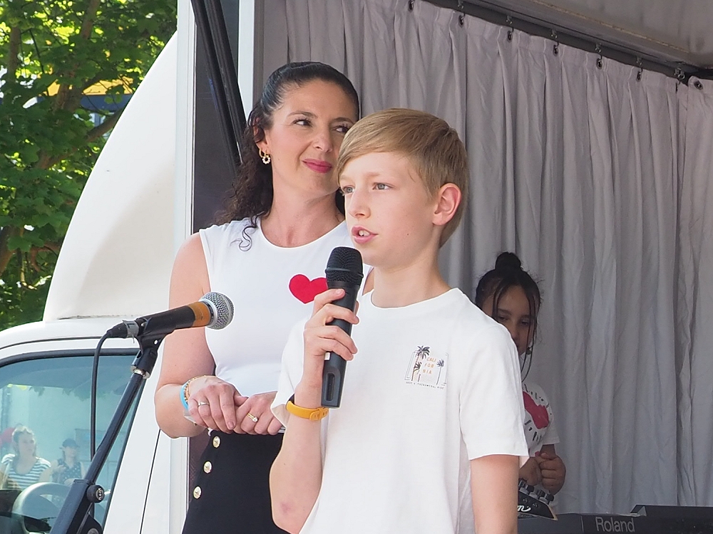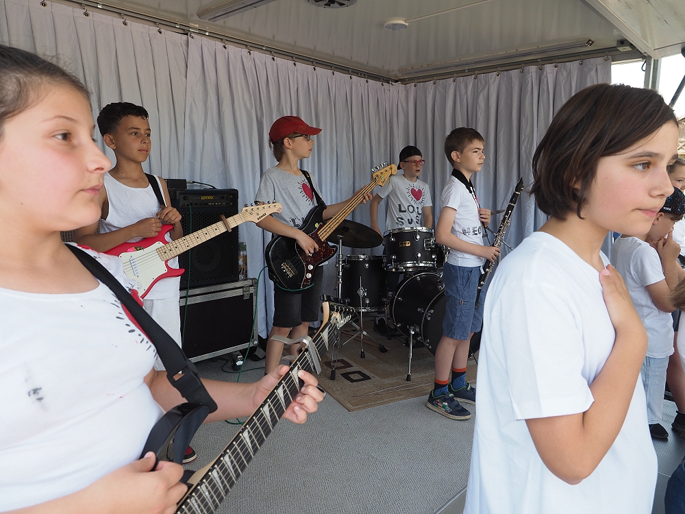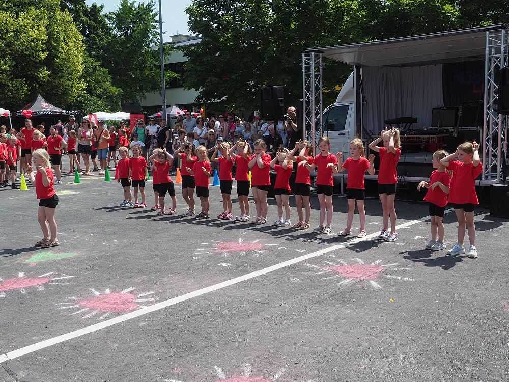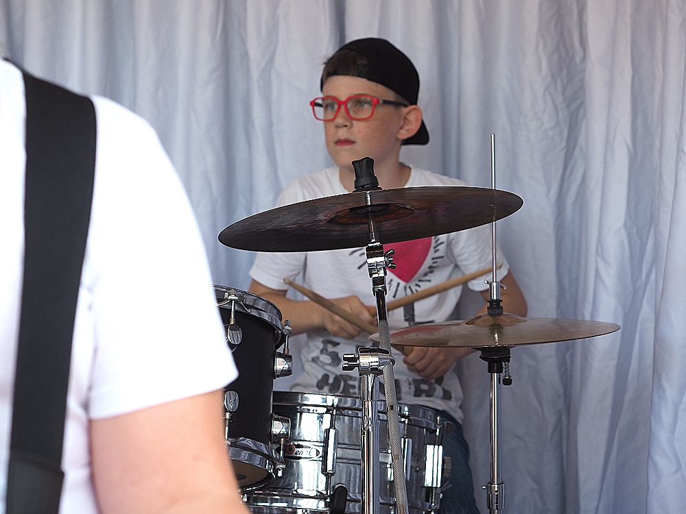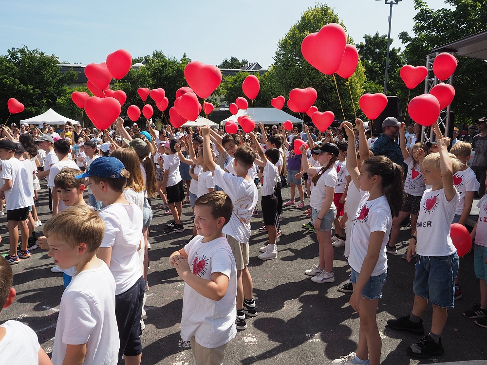 Eröffnet wurde das Schulfest mit der mit Spannung erwarteten Uraufführung des neu kreierten Schulsongs „Grundschule mit Herz“. Es war in der Tat für alle Beteiligten, wie auch die Besucher, ein ganz besonderer Moment. Über mehrere Wochen haben Schülerinnen und Schüler mit Unterstützung von Musik Live und der Band Band Pencilbreakers das Lied nicht nur textlich, sondern auch instrumental einstudiert. Viel Beifall war letztlich der verdiente Lohn für diese mehr als freudige und begeisternde Aufführung! (Anhören)