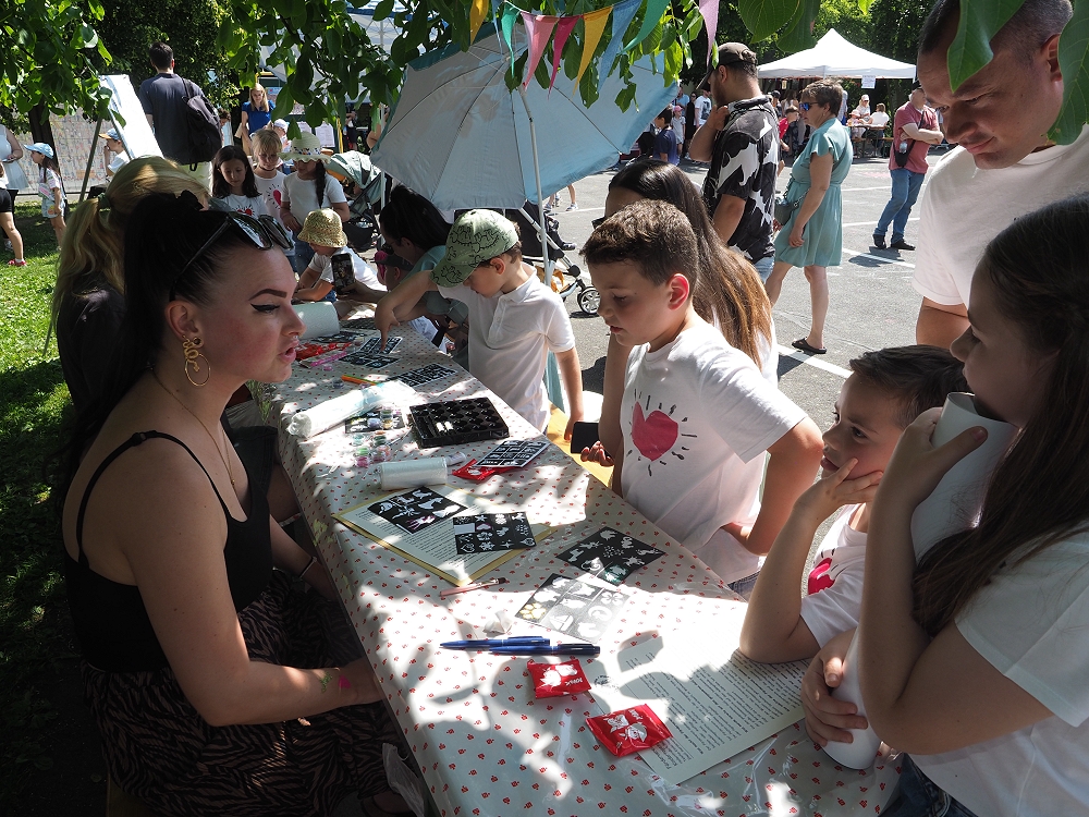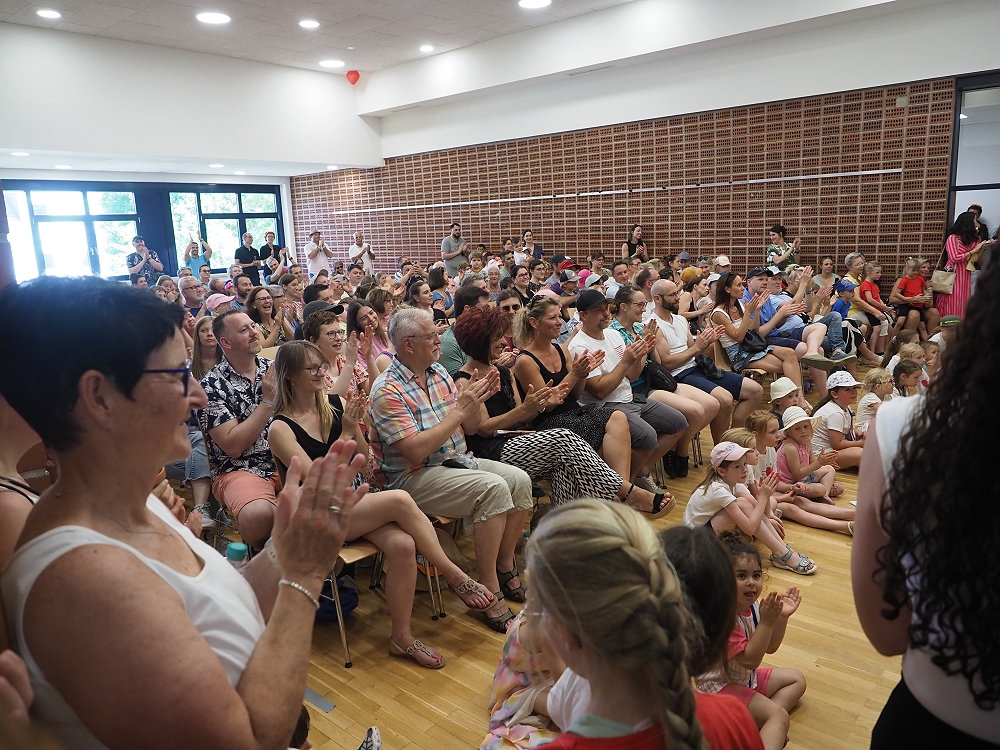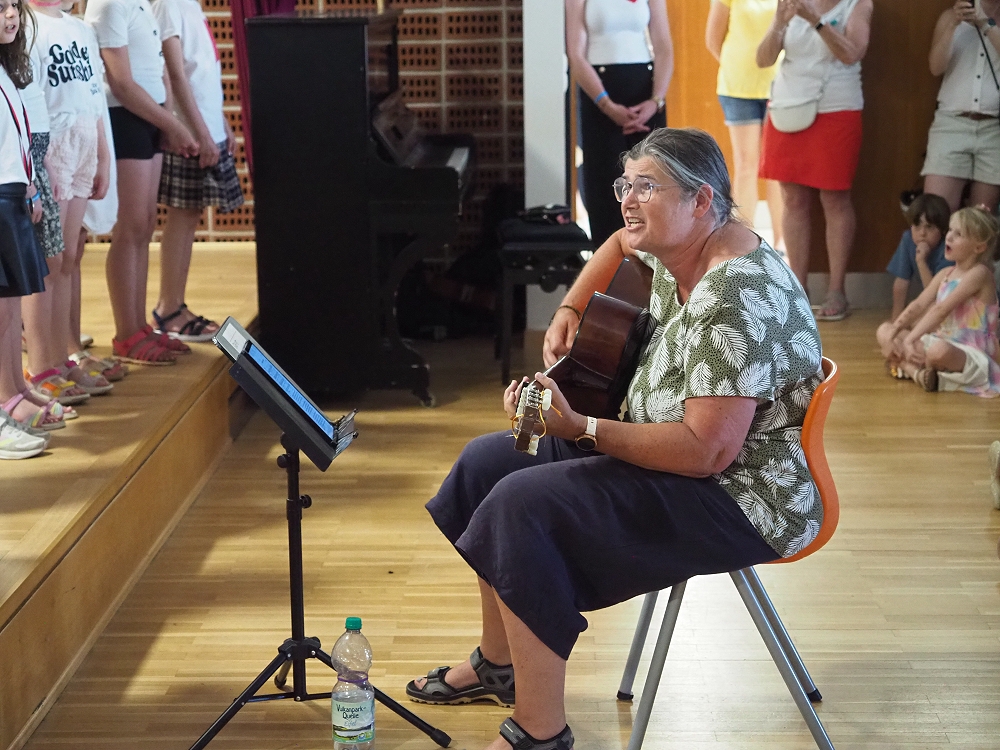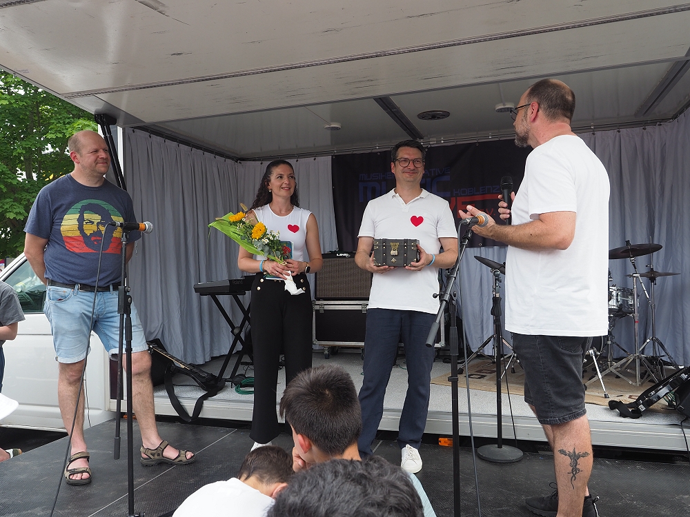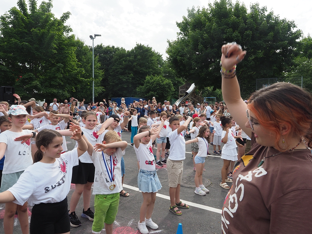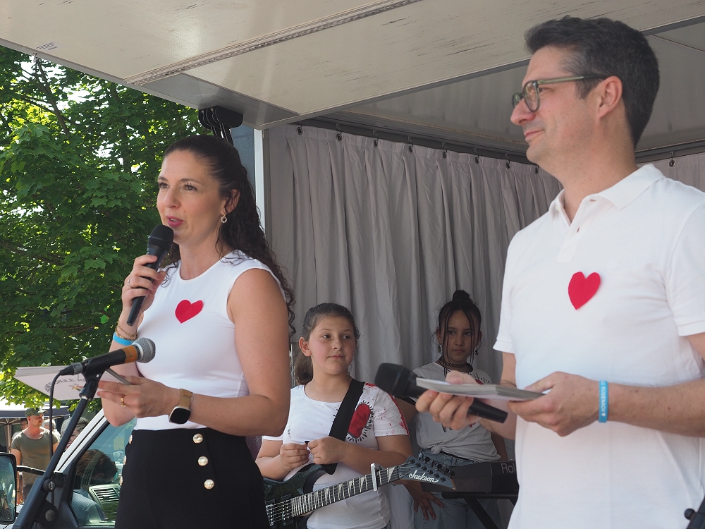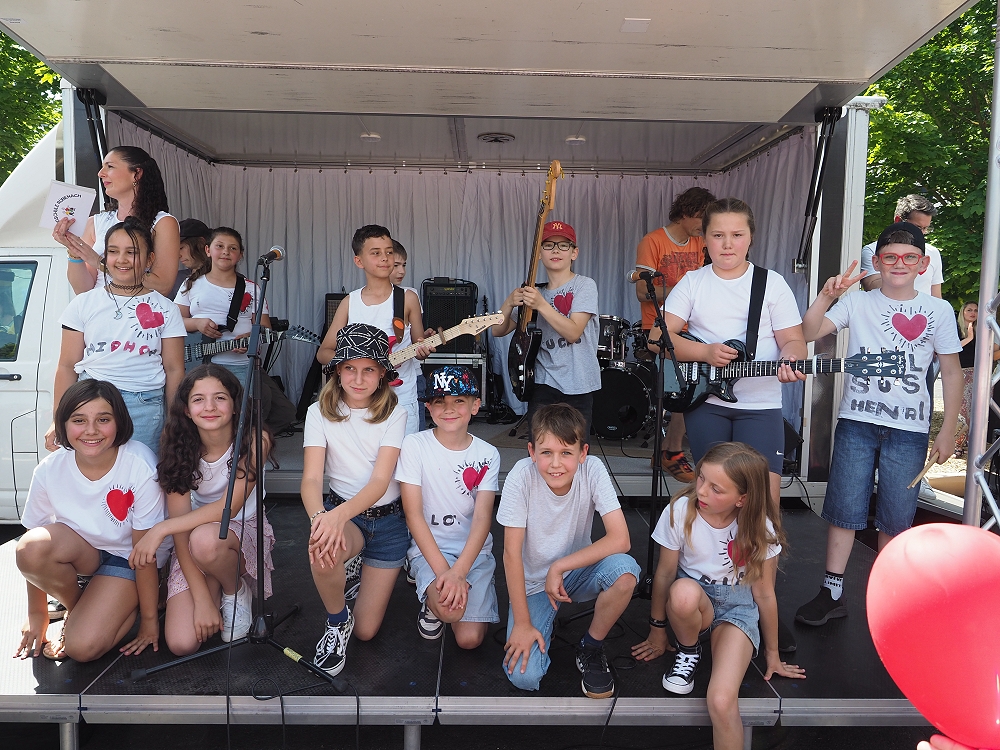 Eröffnet wurde das Schulfest mit der mit Spannung erwarteten Uraufführung des neu kreierten Schulsongs „Grundschule mit Herz“. Es war in der Tat für alle Beteiligten, wie auch die Besucher, ein ganz besonderer Moment. Über mehrere Wochen haben Schülerinnen und Schüler mit Unterstützung von Musik Live und der Band Band Pencilbreakers das Lied nicht nur textlich, sondern auch instrumental einstudiert. Viel Beifall war letztlich der verdiente Lohn für diese mehr als freudige und begeisternde Aufführung! (Anhören)