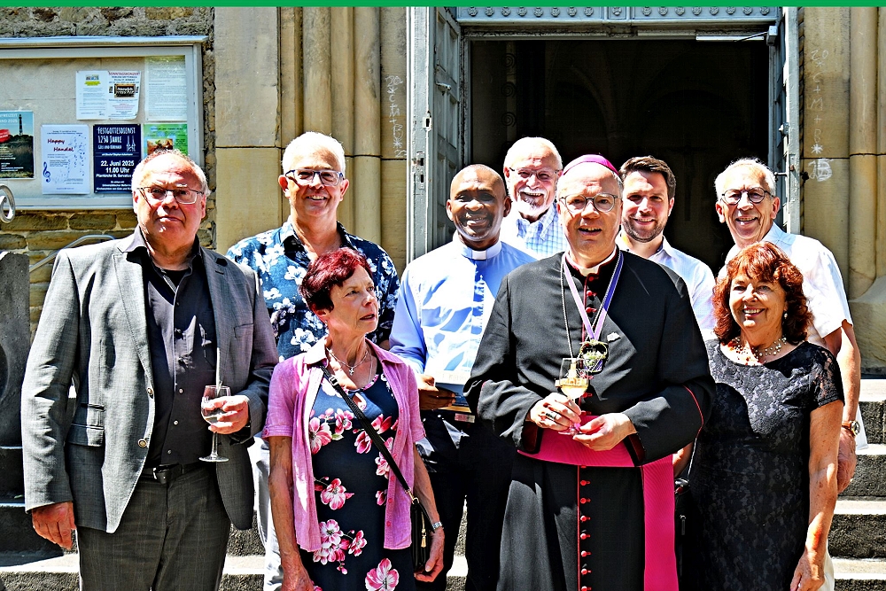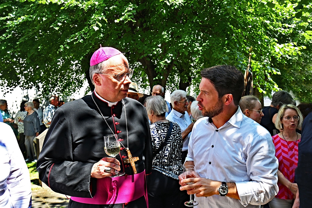 Im Anschluss wurde vor der Kirche durch die Gülser Heimatfreunde zu einem gemeinsamem Umtrunk eingeladen. Dies bot den Besuchern die Gelegenheit, für ein kurzes Gespräch oder Foto mit Bischof Stephan Ackermann.