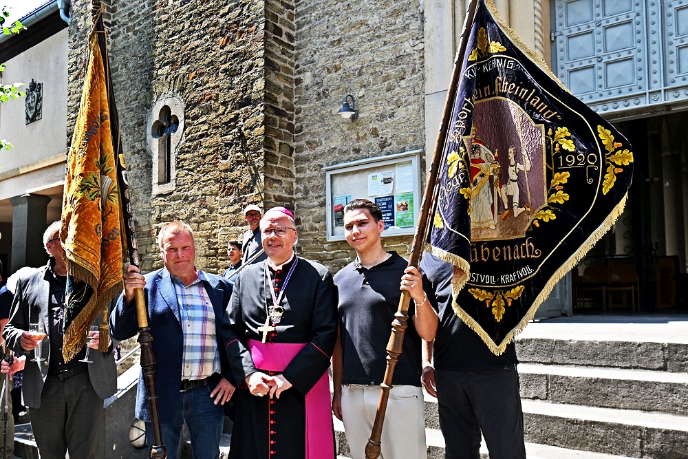 Zweifellos hätte man sich aus Rübenacher Sicht eine etwas größere Beteiligung an diesem Festgottesdienst wünschen können. Nur zwei Fahnenabordnungen aus unserem Stadtteil (Männerchor 1854 und ASV Rübenach) und einige wenige Bürger waren anwesend. Nicht alle Tage feiert man ein 1250-jähriges Ortsjubiläum und ein Bischof kommt zu diesem Anlass zu Besuch.