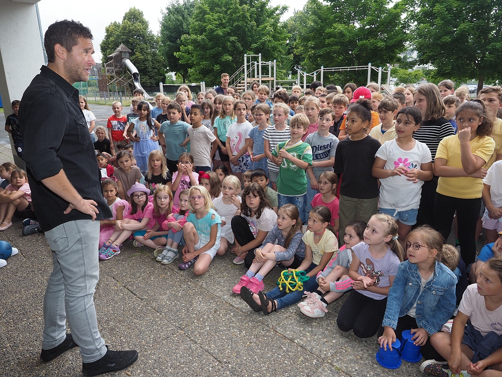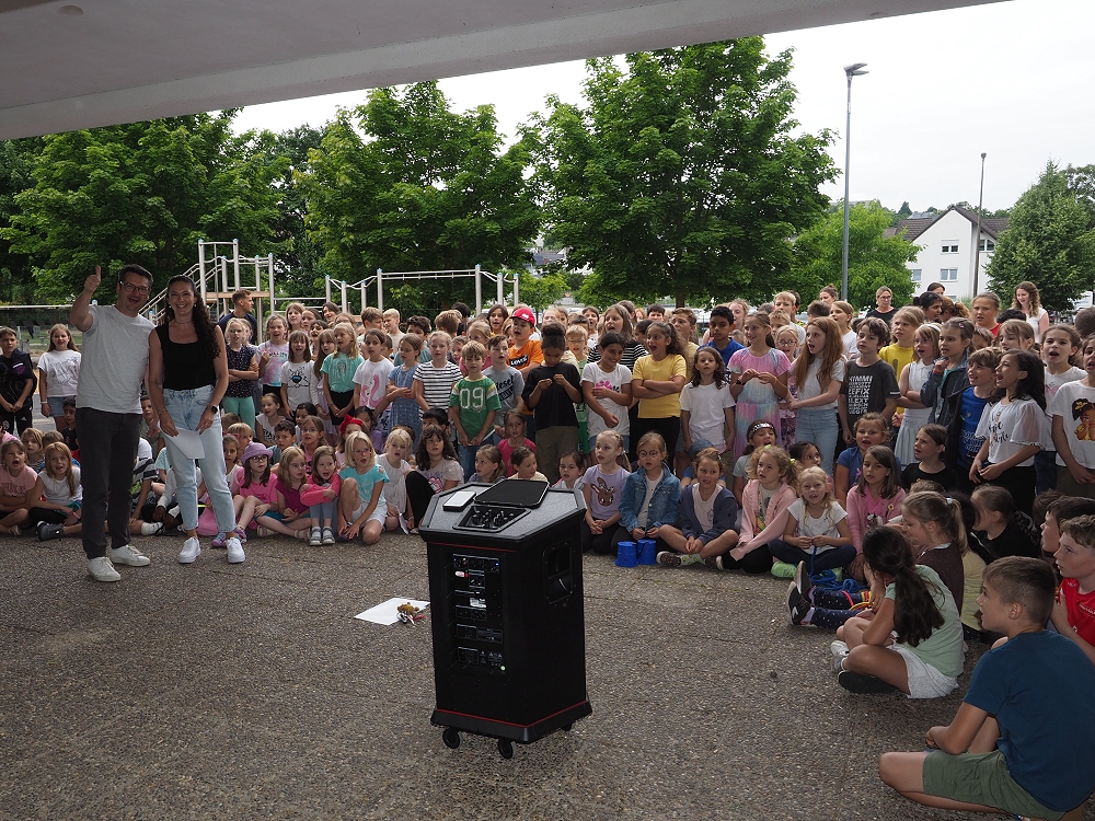 Als Dankeschön gab es von den Schulkindern ein musikalisches Ständchen, die mit dem Schulsong „Grundschule mit Herz“ sich auf ihre Weise damit bedankten.